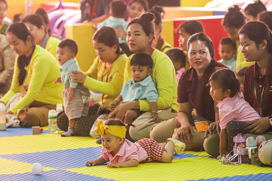សម្តេចធិបតី នាយករដ្ឋមន្ត្រី អញ្ជើញកាត់ខ្សែបូសម្ពោធទារកដា្ឋន និងសំណេះសំណាលជាមួយកម្មការិនីរោងចក្រ ម៉ាវ៉ល ហ្គាមិន ឯ.ក នៅតំបន់សេដ្ឋកិច្ចពិសេស រ៉ូយ៉ាល់ គ្រុប
