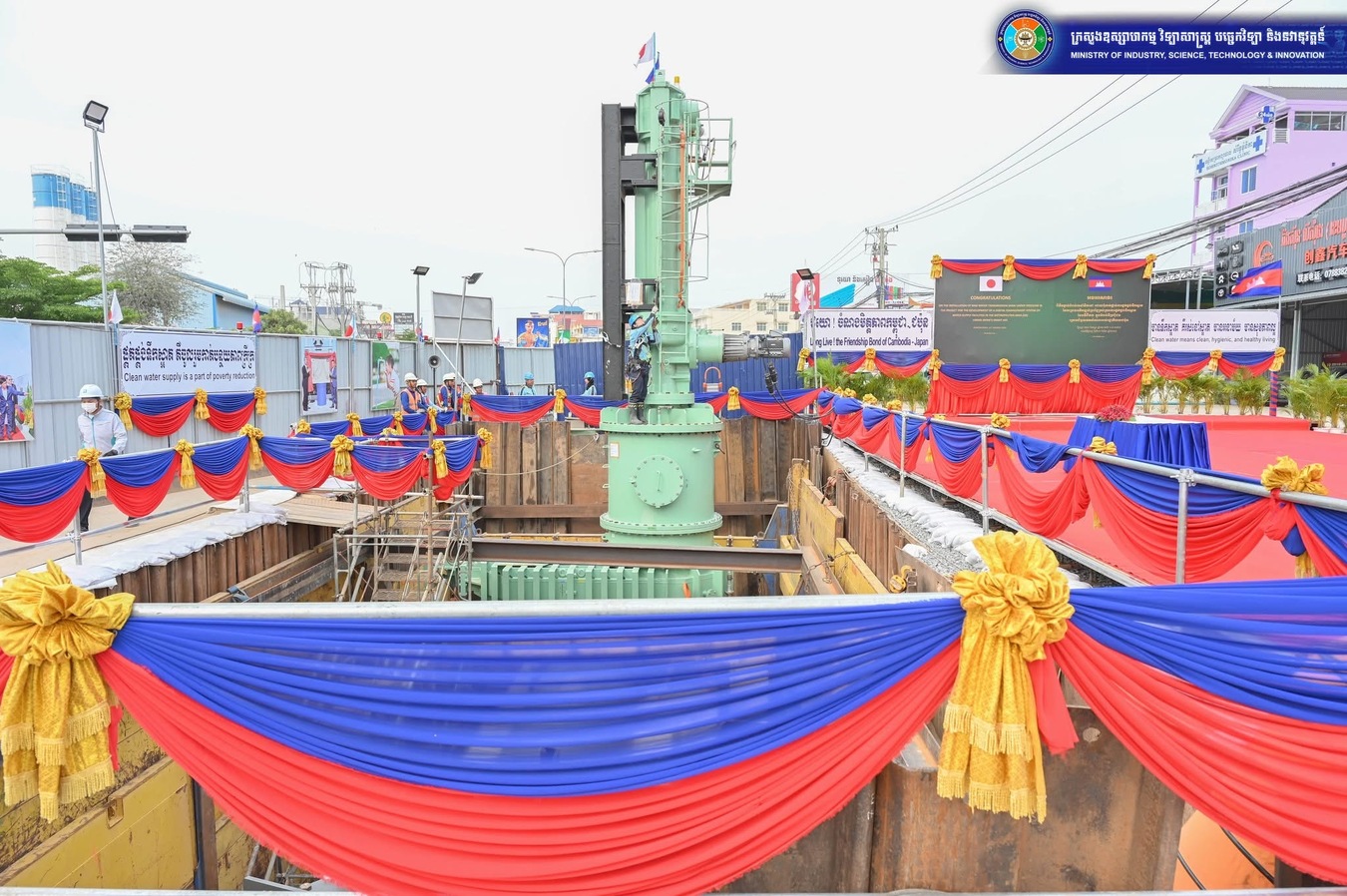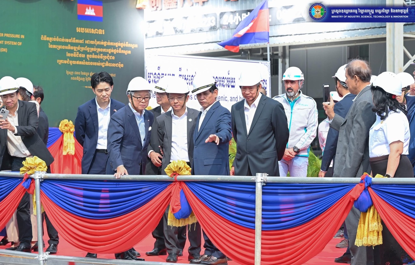 យោងតាមការចុះផ្សាយរបស់ ក្រសួងព័ត៌មាន បានឱ្យដឹងថា នាថ្ងៃទី២១ ខែមីនា ឆ្នាំ២០២៥នេះ ឯកឧត្តម ហែម វណ្ណឌី រដ្ឋមន្រ្តីក្រសួងឧស្សាហកម្ម វិទ្យាសាស្រ្ត បច្ចេកវិទ្យា និងនវានុវត្តន៍ និង ឯកឧត្តម UENO Atsushi ឯកអគ្គរាជទូតជប៉ុនប្រចាំកម្ពុជា បានអញ្ជើញជាអធិបតីក្នុងពិធីភ្ជាប់បំពង់មេនាំទឹកឆៅដោយពុំផ្ដាច់ការផ្គត់ផ្គង់ទឹកស្អាត (Connection Under Pressure) ក្រោមគម្រោងអភិវឌ្ឍន៍ប្រព័ន្ធគ្រប់គ្រងការផ្គត់ផ្គង់ទឹកស្អាតបែបឌីជីថលក្នុងតំបន់ទីប្រជុំជន។