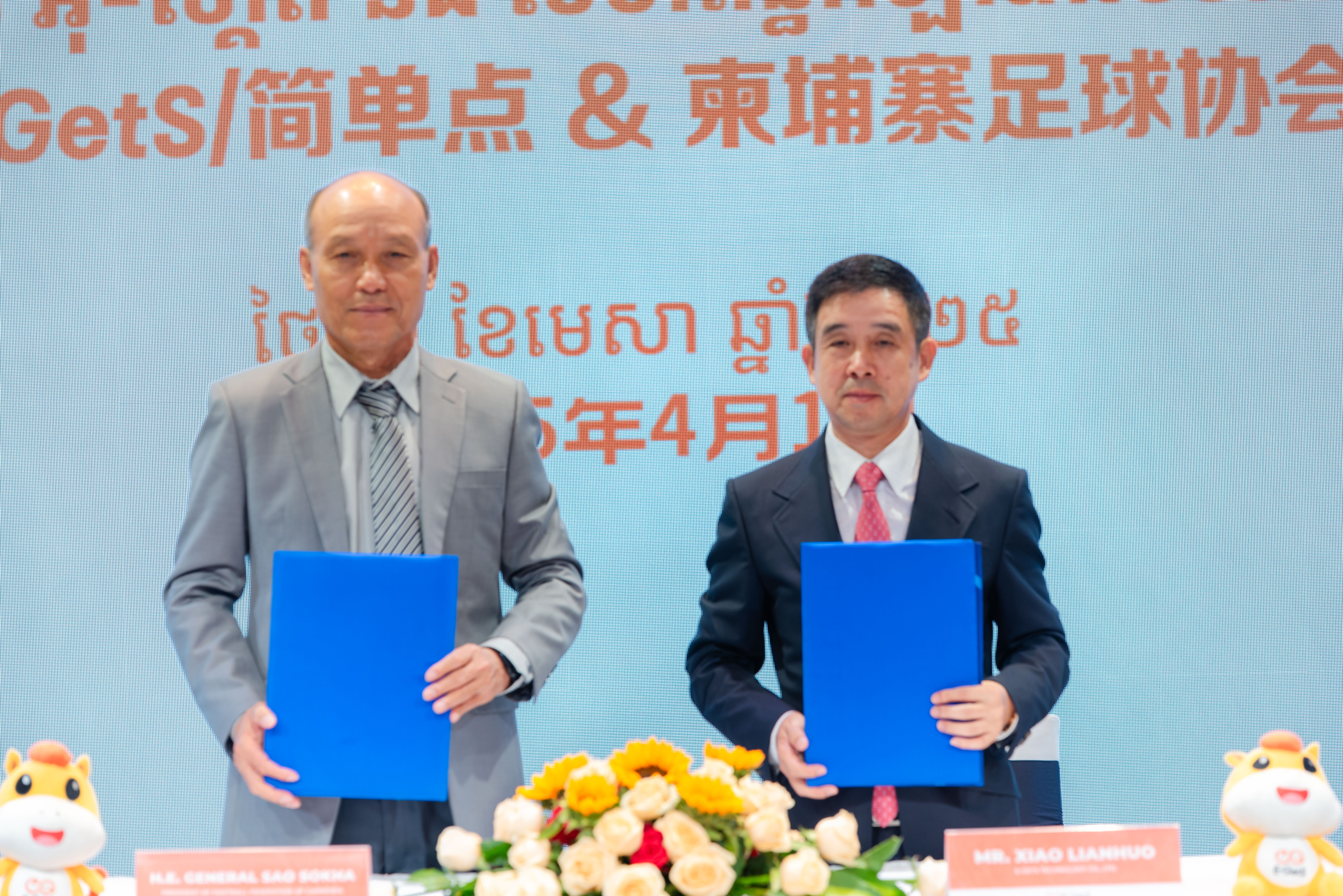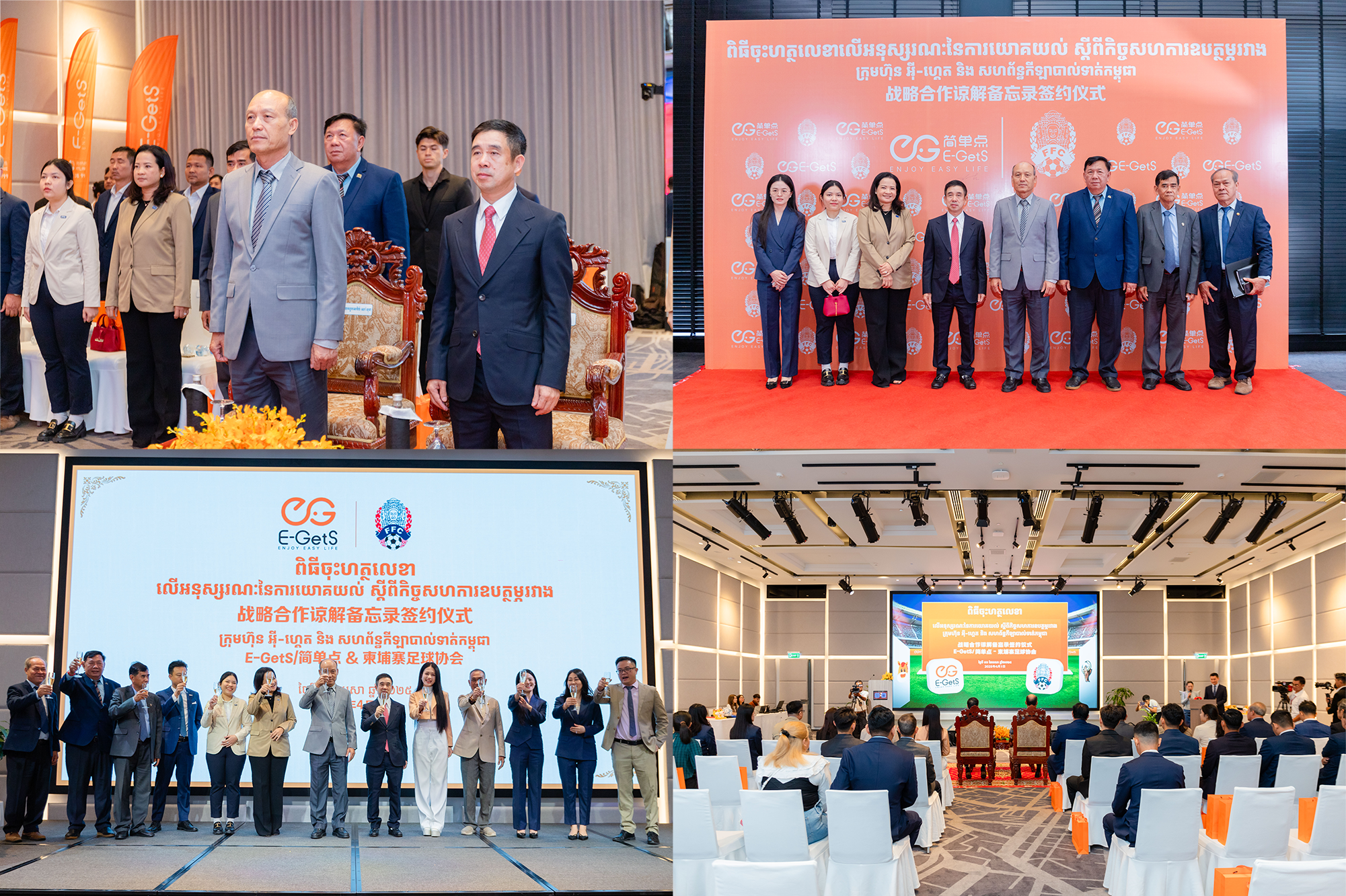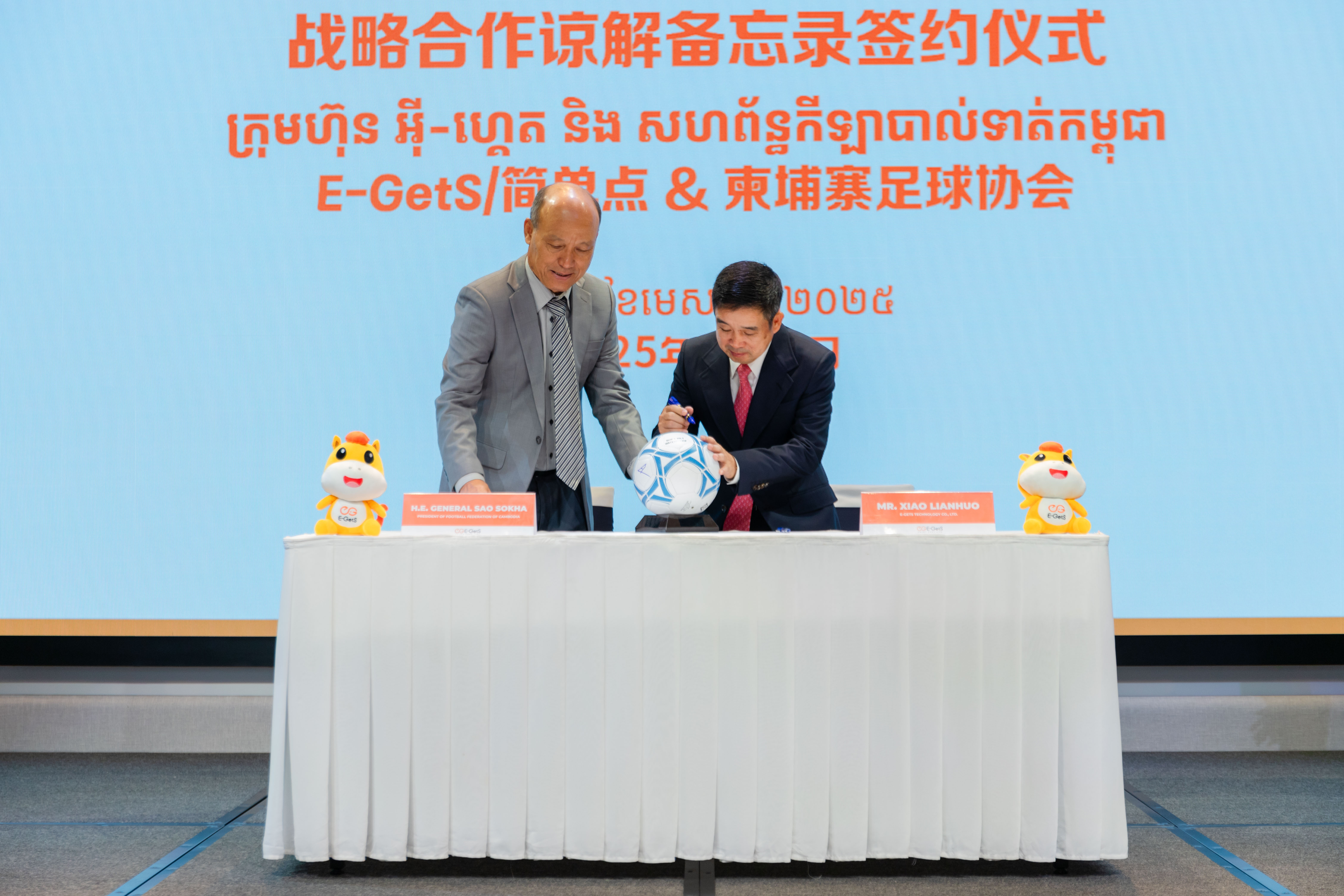 នៅព្រឹកថ្ងៃទី១ ខែមេសានេះ ពិធីចុះហត្ថលេខាលើអនុស្សរណៈនៃការយោគយល់គ្នាស្តីពីកិច្ចសហការឧបត្ថម្ភ រវាងក្រុមហ៊ុន E-GetS/អ៉ី-ហ្គេត និងសហព័ន្ធកីឡាបាល់ទាត់កម្ពុជាបានប្រារព្ធឡើងនៅរាជធានីភ្នំពេញ។ ក្នុងកម្មវិធីនេះបានប្រព្រឹត្តឡើងក្រោមអធិបតីភាពឯកឧត្តម នាយកឧត្តមសេនីយ៍ សៅ សុខា ប្រធានសហព័ន្ធកីឡាបាល់ទាត់កម្ពុជា រួមជាមួយវត្តមាន ប្រធានក្រុមប្រឹក្សាភិបាល E-GetS/អ៉ី-ហ្គេត លោក Xiao Lianhuo អនុប្រធានក្រុមប្រឹក្សារបស់ក្រុមហ៊ុន E-GetS/អ៉ី-ហ្គេត កញ្ញា Wang Huifang និងលោក Zhang Juhui កញ្ញា Mina ទូតសុឆន្ទៈ E-GetS/អ៉ី-ហ្គេត ព្រមជាមួយថ្នាក់ដឹកនាំ និងភ្ញៀវកិត្តិយសមកពីគណៈកម្មាធិការសហព័ន្ធកីឡាបាល់ទាត់កម្ពុជា គណៈកម្មាធិការជាតិអូឡាំពិកកម្ពុជា និងបណ្តាញប្រព័ន្ធផ្សព្វផ្សាយចិន និងបរទេសផ្សេងៗផងដែរ។