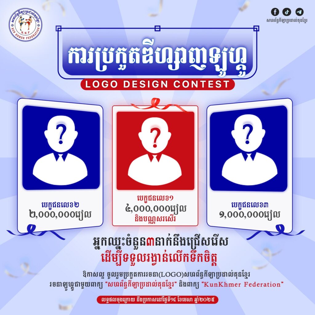 ឱកាសល្អ! សហព័ន្ធកីឡាប្រដាល់គុនខ្មែរ ប្រកាសការប្រកួតឌីហ្សាញឡូហ្គូ ដោយអ្នកឈ្នះចំនួន៣នាក់នឹងទទួលបានប្រាក់រង្វាន់