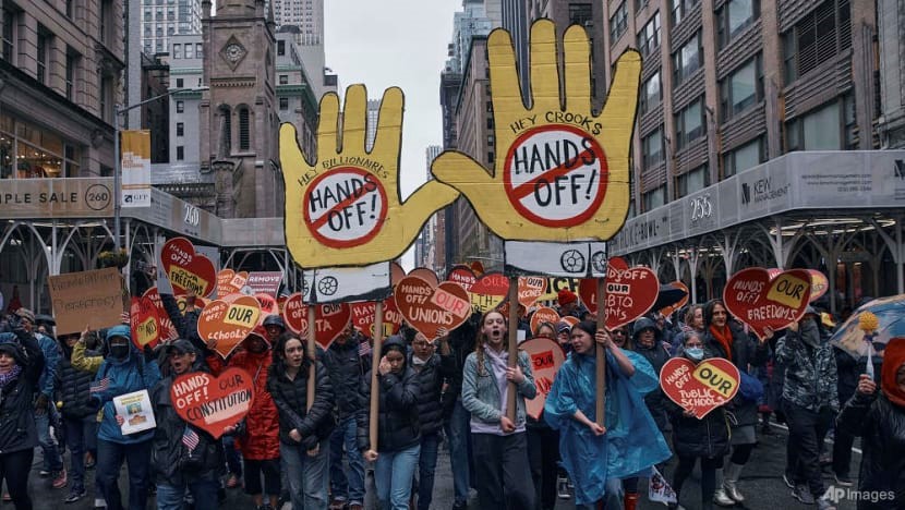 អាមេរិក៖ ពលរដ្ឋអាមេរិករាប់ពាន់នាក់បាននាំគ្នាចុះថ្នល់ធ្វើបាតុកម្មប្រឆាំងនឹងលោកប្រធានាធិបតី ដូណាល់ ត្រាំ និងលោកមហាសេដ្ឋី​ អេឡុន ម៉ាសក៍ នេះបើយោងតាមការចុះផ្សាយរបស់បណ្តាញសារព័ត៌មាន Channel News Asia នៅក្នុងថ្ងៃអាទិត្យ ទី៦​ ខែមេសា។ បាតុកម្មត្រូវបានរៀបចំឡើងនៅក្នុងរដ្ឋធានីវ៉ាស៊ីនតោន ដែលមានអ្នកចូលរួមប្រមាណជា ១,២០០នាក់ ខណៈនៅតាមបណ្តារដ្ឋនិងក្រុងផ្សេងៗទៀតនៅទូទាំងសហរដ្ឋអាមេរិកក៏មានចលនាជួបជុំគ្នាសម្តែងការមិនពេញចំពោះយោបាយដឹកនាំរបស់លោកប្រធានាធិបតី ដូណាល់ ត្រាំផងដែរ។