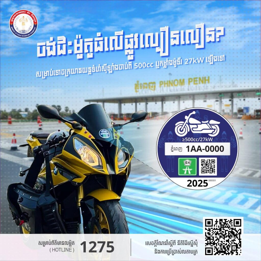 ក្រសួងសាធារណការ ប្រាប់ពីរបៀបស្នើសុំលតាបត្រអនុញ្ញាតធ្វើដំណើរលើផ្លូវល្បឿនលឿនសម្រាប់អ្នកជិះម៉ូតូធំ