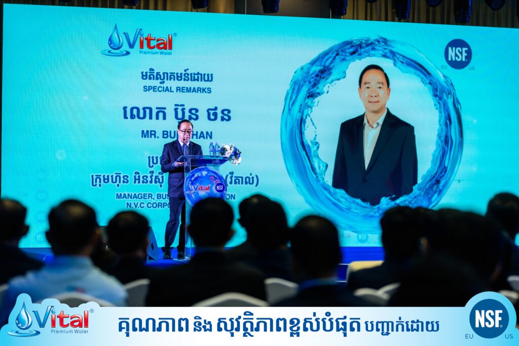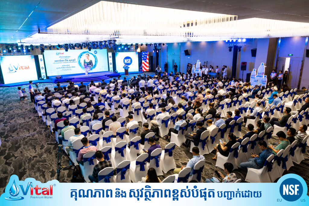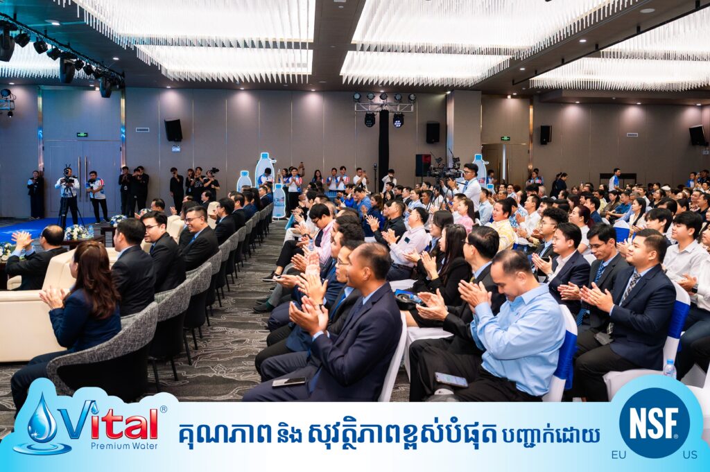 ការប្រកាសជាផ្លូវការនៃសមិទ្ធផលថ្មីនេះដែរ ត្រូវបានប្រារព្ធធ្វើឡើងនៅក្នុងសន្និសីទសារព័ត៌មានក្រោមអធិបតីភាពដ៏ខ្ពង់ខ្ពស់របស់ឯកឧត្តម ឡាវ វ៉ាន់ រដ្ឋលេខាធិការ ក្រសួងសាធារណការ និងដឹកជញ្ជូន និងជាទីប្រឹក្សាជាន់ខ្ពស់ ក្រុមហ៊ុន វ័នម៉រ គ្រុប, លោកជំទាវ ជឹង សុគន្ធាវី នាយិកាប្រតិបត្តិ ក្រុមហ៊ុន អិនវីស៊ី ខបភើរេសិន (វីតាល់), ឯកឧត្តមវេជ្ជ. ហុក គឹមចេង អគ្គនាយកបច្ចេកទេសសុខាភិបាល ក្រសួងសុខាភិបាល, លោក ភីរ៉ាក់ភុង ផៃស៊ីតគុនវិវ៉ាត់ ប្រធានអនុវត្តកិច្ចការសវនកម្មប្រចាំតំបន់អាស៊ីប៉ាស៊ីហ្វិកនៃស្ថាប័ន NSF, ថ្នាក់ដឹកនាំក្រុមហ៊ុន អិនវីស៊ី ខបភើរេសិន (វីតាល់), មន្ត្រីរាជការ ដៃគូអាជីវកម្ម អ្នកផលិតមាតិកា និងហ្វេនរបស់ទឹកពិសាវីតាល់ប្រមាណជិត ៤០០ នាក់ នៅក្នុងសាលសន្និសីទជាន់ទី ៤៧ នៃអគារ Morgan Tower រាជធានីភ្នំពេញ។