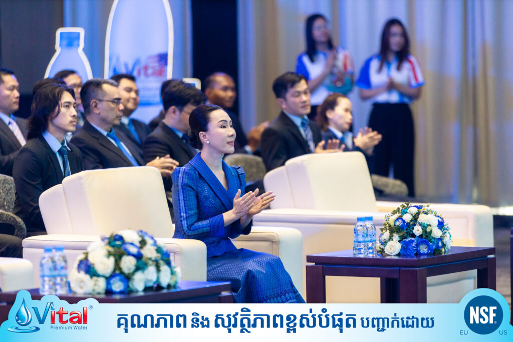 ក្នុងឱកាសដ៏មហាឡារិកនេះដែរ ឯកឧត្តមវេជ្ជបណ្ឌិត ហុក គឹមចេង អគ្គនាយកបច្ចេកទេសសុខាភិបាល នៃក្រសួងសុខាភិបាល បានសម្តែងនូវការកោតសរសើរចំពោះកិច្ចប្រឹងប្រែងរបស់វីតាល់ ដែលបានបើកទំព័រប្រវត្តិសាស្រ្តថ្មីឈានមុខគេទទួលស្គាល់ពីស្ថាប័នអន្តរជាតិ NSF ដោយមានប្រសាសន៍ថា៖ “វិញ្ញាបនបត្រនេះបញ្ជាក់ថា វីតាល់ មិនត្រឹមតែបំពេញតាមស្ដង់ដាអន្តរជាតិប៉ុណ្ណោះទេ ប៉ុន្តែថែមទាំងបំពេញតាមតម្រូវការសុខាភិបាលសាធារណៈរបស់ប្រទេសកម្ពុជាផងដែរ ក្នុងការផ្ដល់ជូនទឹកពិសាដែលមានគុណភាព និងសុវត្ថិភាពខ្ពស់បំផុតសម្រាប់អ្នកប្រើប្រាស់របស់ជាតិខ្លួន។ ឯកឧត្តមវេជ្ជបណ្ឌិត បានផ្ដល់ជាអនុសាសន៍ណែនាំ និងគាំទ្រដល់វិស័យឯកជនឱ្យយកចិត្តទុកដាក់អនុវត្ត និងពង្រឹងនូវស្តង់ដាសុវត្ថិភាព និងអនាម័យខ្ពស់ តាមរយៈការបង្កើតបទបញ្ជា ការត្រួតពិនិត្យជាប្រចាំ និងការផ្ដល់ជំនួយបច្ចេកទេស ដើម្បីឱ្យសមស្របតាមស្តង់ដាអន្ដរជាតិ។