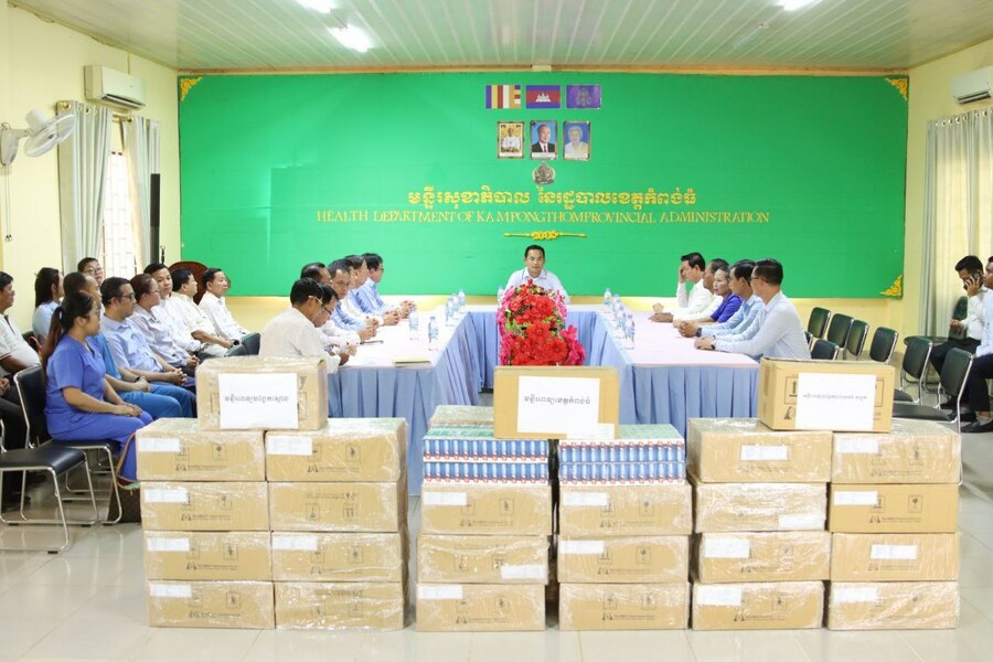(ខេត្តកំពង់ធំ)៖ យោងតាមការចុះផ្សាយរបស់ ក្រសួងព័ត៌មាន នៅថ្ងៃទី១១ ខែឧសភា ឆ្នាំ២០២៥ បានឱ្យដឹងថា ឯកឧត្តម នួន ផារ័ត្ន អភិបាលខេត្តកំពង់ធំ អញ្ជើញចូលរួមក្នុងពិធីប្រគល់-ទទួលឱសថព្យាបាលជំងឺទឹកនោមផ្អែម ចំនួន ២៥០០ប្រអប់ សម្រាប់ចែកជូនដល់មន្ទីរពេទ្យបង្អែកទាំង៣ ក្នុងខេត្តកំពង់ធំ រួមមាន មន្ទីរពេទ្យខេត្តកំពង់ធំ មន្ទីរពេទ្យបង្អែកស្ទោង និងមន្ទីរពេទ្យបង្អែក បារាយណ៍-សន្ទុក នៅរសៀលថ្ងៃទី៩ ខែឧសភា ឆ្នាំ២០២៥ នៅសាលប្រជុំមន្ទីរសុខាភិបាលខេត្តកំពង់ធំ។