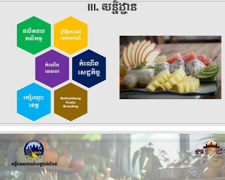 បន្ថែមពីនោះ ក៏ជាឱកាសបង្កើនទំនុកចិត្តដល់ភ្ញៀវ ដែលចង់ជាវផលិតផល ផល្លានុផល ក្នុងខេត្តបាត់ដំបងផ្ទាល់ដែលមានប្រភពច្បាស់លាស់ ,ផ្សព្វផ្សាយពីផលិតផលខេត្តបាត់ដំបង និងបានបង្កលក្ខណៈងាយស្រួលរវាងអ្នកទិញ និងអ្នកលក់ផងដែរ។ ក្នុងកិច្ចប្រជុំពិភាក្សាលើសេចក្តីព្រាងពិពណ៌ខាងលើ ក៏មានរៀបចំស្តង់ អង្ករបាត់ដំបង, ផល្លានុផលសំខាន់ៗក្នុងខេត្តបាត់ដំបងមានដូចជា ផ្លែទុរេន ម្នាស់ សាវម៉ាវ មៀន ក្រូច ដូង ត្នោត ស្រកានាគ ស្វាយ និងផ្លែឈើជាច្រើនមុខទៀត រួមទាំងមាន បង្អែម និងអាហារផងដែរ ។