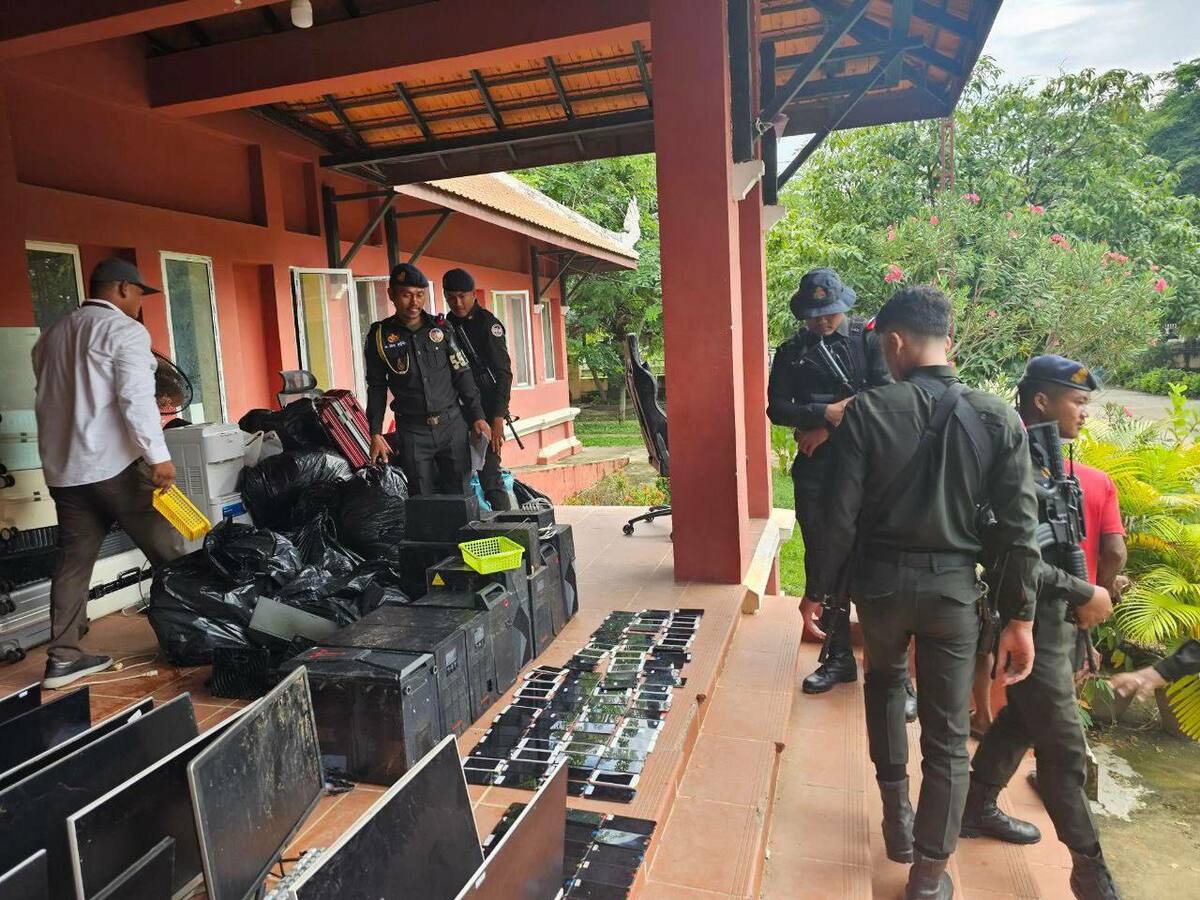 ក្រុមសមត្ថកិច្ចក៏បានឃាត់រថយន្តចំនួន ២៨ គ្រឿង ក្នុងនោះរថយន្តកូរ៉េដឹកទំនិញ ០២ គ្រឿង និងរថយន្ត ប្រភេទទេសចរណ៍២៦ គ្រឿង (ធំ១គ្រឿង) និងដកហូតសម្ភារ:ជាវត្ថុតាងដើម្បីរក្សាទុករួមមាន៖ ម៉ូនីទ័រ ចំនួន ៧៨ គ្រឿង ធុងCPU ចំនួន ១០ គ្រឿង ទូរស័ព្ទដៃ ចំនួន ១៧៧គ្រឿង ដុំទប់ភ្លើង ចំនួន០២ គ្រឿង key board ចំនួន ៤៩ គ្រឿង ទូរទស្សន៍ ចំនួន ០១ គ្រឿង និងសម្ភារ:សម្រាប់តភ្ជាប់ប្រពន្ធ័ផ្សេងមួយចំនួនទៀត។