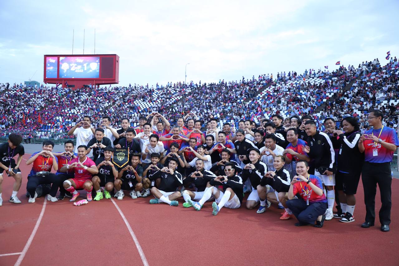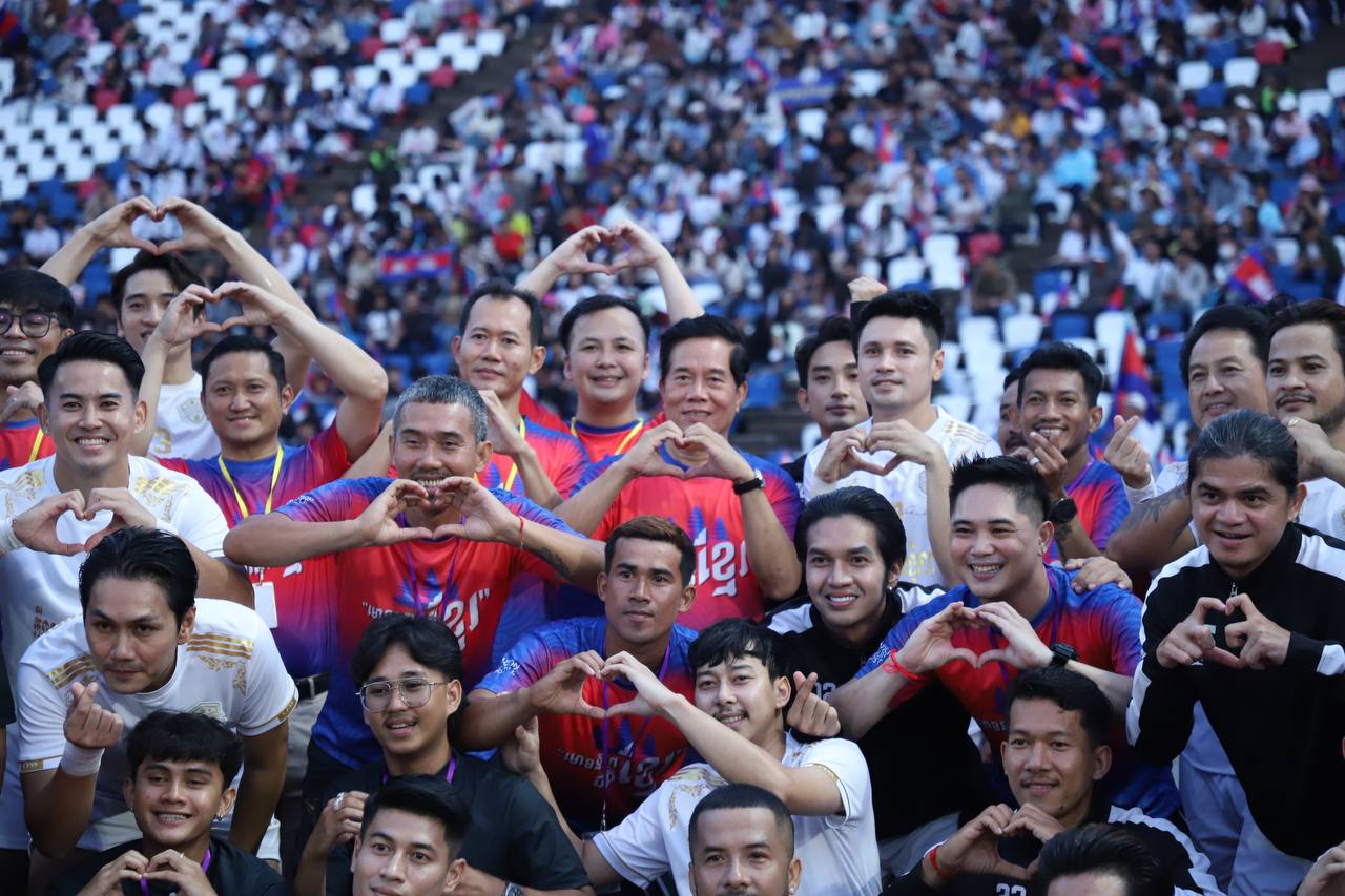 សូមបញ្ជាក់ថា មុននឹងមានការជួបជុំច្រៀងចម្រៀងជាតិ ទាំង៣បទឡើង ក្រុមបាល់ទាត់ចំនួន៨ក្រុម មានដូចជា ក្រុមបាល់ទាត់សម្ព័ន្ធយុវជនស្រឡាញ់សន្តិភាព ក្រុមបាល់ទាត់នៃសមាគមគ្រូពេទ្យស្ម័គ្រចិត្តសម្តេចតេជោ (TYDA) ក្រុមបាល់ទាត់ Vlogger All Star ក្រុមបាល់ទាត់សហព័ន្ធយុវជនបូជាការពារយុត្តិធ៌ ក្រុមបាល់ទាត់ពិធីករកីឡាកម្ពុជា ក្រុមបាល់ទាត់ផ្ការីកគ្រប់រដូវ ក្រុមបាល់ទាត់ ស.ស.យ.ក. អលស្តារ និង ក្រុមបាល់ ទាត់តារាកម្ពុជា បានធ្វើការប្រកួតគ្នា ដែលការប្រគួតនេះ បានផ្តោតលើស្មារតីរួបរួម មិនបានគិតពីលទ្ធផលឈ្នះចាញ់ឡើយ គឺដើម្បីកៀរគរ មូលនិធិ គាំទ្រ វីរកងទ័ពជួរមុខហើយក្នុងនោះ លោកជំទាវ បណ្ឌិត ពេជ ចន្ទមុន្នី ហ៊ុន ម៉ាណែត ក៏បានអញ្ជើញចូលរួមទស្សនា និងលើកទឹកចិត្ត ជាមួយប្រជាពលរដ្ឋយ៉ាងច្រើនកុះករនៅពហុកីឡដ្ឋានជាតិអូឡាំពិក ដោយមិនមានកៅអីជាគណៈធិបតីអ្វីឡើយ ៕