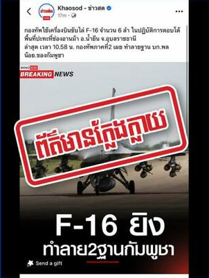 ការបង្ហោះផ្សាយរបស់បណ្ដាញផ្សាយថៃ យោធាថៃបានបំផ្លាញមូលដ្ឋានកងពលថ្មើរជើងកម្ពុជា គឺជាព័ត៌មានក្លែងក្លាយ! សូមបងប្អូនប្រជាពលរដ្ឋ កុំមានការយល់ច្រលំនិងសូមកុំបន្តចែករំលែកព័ត៌មាននេះ។