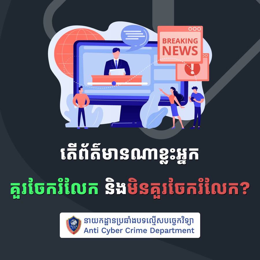 នាយកដ្ឋានប្រឆាំងបទល្មើសបច្ចេកវិទ្យា ណែនាំពីព័ត៌មាន ដែលគួរចែករំលែក និងមិនគួរចែករំលែក ក្នុងអំឡុងសង្គ្រាមឈ្លានពានរបស់ថៃតាមព្រំដែនកម្ពុជា-ថៃ