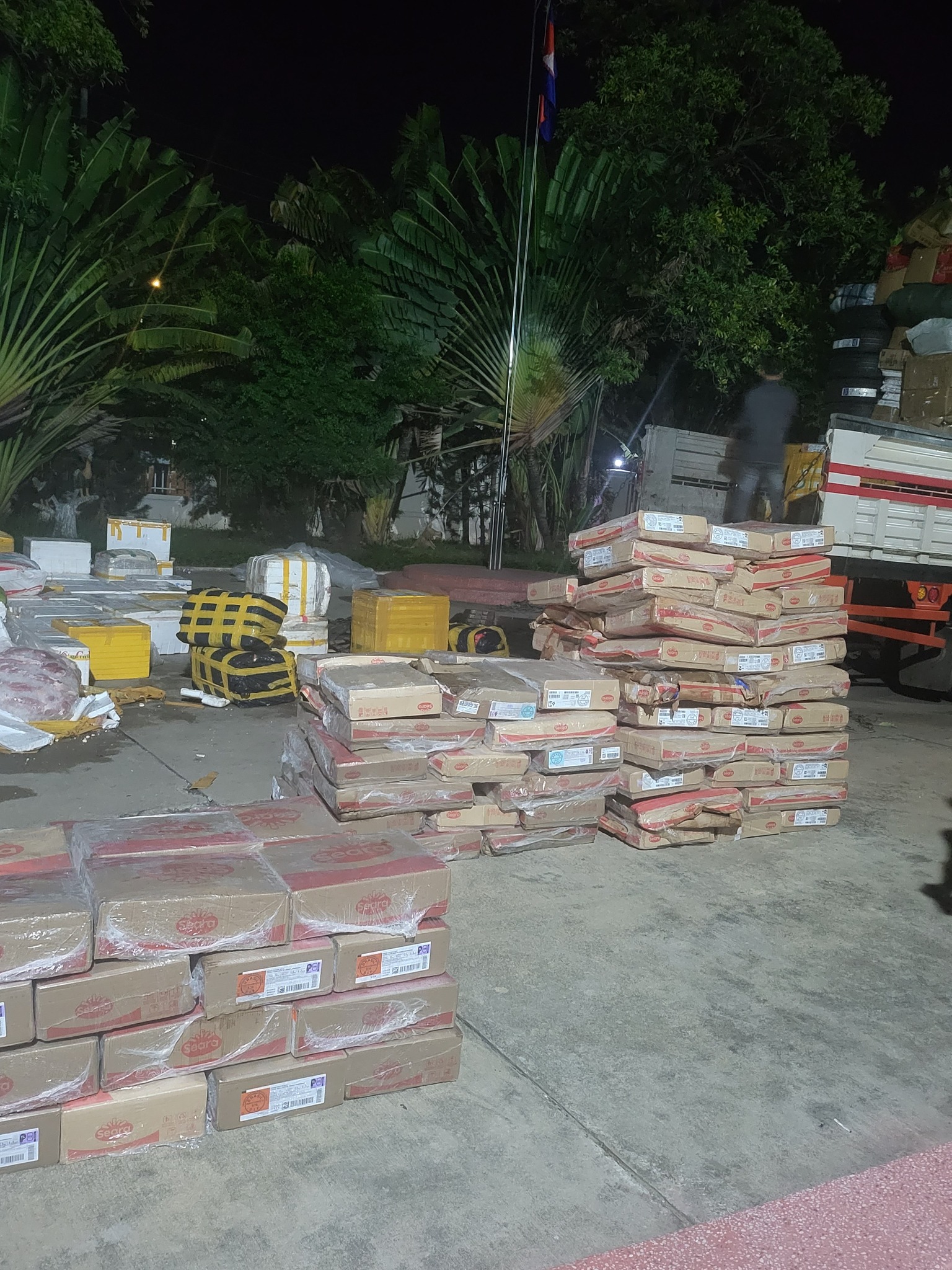 តាមការបញ្ជាក់លម្អិតរបស់ ឯកឧត្ដម ហ៊ុន សារ៉ាត់ ថា នៅវេលាម៉ោង ២២និង៣៥នាទី កាលពីថ្ងៃទី ៥ ខែសីហា ឆ្នាំ ២០២៥ ដោយមានការសម្របសម្រួលនីតិវិធី ពីព្រះរាជអាជរងនៃអយ្យការអមសាលាដំបូងរាជធានីភ្នំពេញ បានឱ្យក្រុមអន្តរាគមន៍បង្ក្រាបបទល្មើសចលនាសត្វ នៃអគ្គដ្ឋានសុខភាពសត្វ និងផលិតកម្មសត្វ ចុះឃាត់ចាប់រថយន្ត ១គ្រឿង ម៉ាក HYUNDIA ដឹកសាច់សត្វបង្កកចំនួន ៦៧៨០គីឡូក្រាម មានដូចជា៖ ជើងមាន់ គូទមាន់ ស្លាបមាន់ សាច់ជ្រូក ខ្លាញ់ជ្រូក ទាមូល សាច់គោ សាច់មាន់កិន សសៃជើងមាន់។
