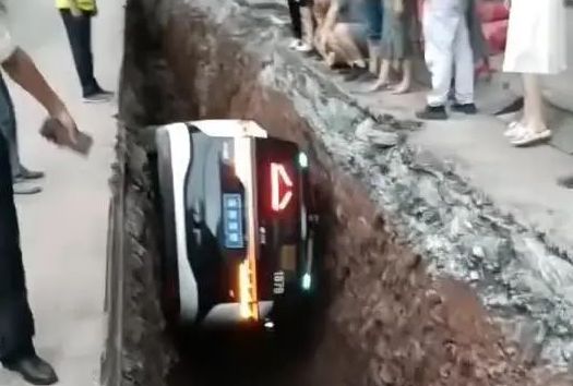 រថយន្តតាក់ស៊ីគ្មានមនុស្សបើកមួយគ្រឿងនៅចិន បានបើកបរខុសបច្ចេកទេសធ្លាក់ចូលក្នុងរណ្តៅដ៏ជ្រៅមួយក្នុងការដ្ឋានសំណង់
