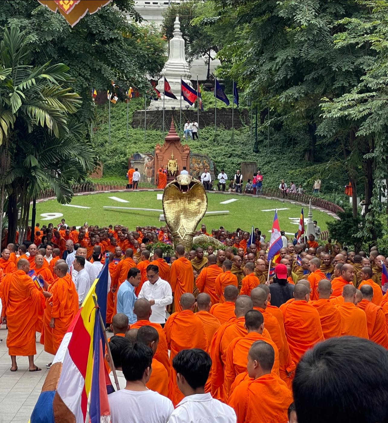 ជាពិសេសគណៈសង្ឃនាយក សូមសម្តែងនូវការគាំទ្រយ៉ាងពេញទំហឹងចំពោះការខិតខំប្រឹងប្រែងអស់ពី កម្លាំងកាយចិត្ត និងកម្លាំងបញ្ញាស្មារតីរបស់ សម្តេចអគ្គមហាសេនាបតីតេជោ ហ៊ុន សែន ប្រធានព្រឹទ្ធសភា ដែលជាអគ្គមគ្គុទ្ទេសដ៍ឆ្នើមមានបទពិសោធន៍ចាស់ទុំ បានជួយដល់រាជរដ្ឋាភិបាល និងជម្រុញលើកទឹកចិត្តដល់ កងទ័ពយោធពលខេមរភូមិន្ទ ឱ្យកាន់តែមានឆន្ទៈមោះមុតក្នុងការការពារបូរណភាពទឹកដី នៃព្រះរាជាណាចក្រកម្ពុជា បាន១០០%។ សូមសម្តែងអំណរគុណចំពោះរាជរដ្ឋាភិបាលកម្ពុជា ដែលមាន សម្តេចមហាបវវាធិបតី ហ៊ុន ម៉ាណែត នាយករដ្ឋមន្ត្រី ដែលបានពុះពារគ្រប់ឧបសគ្គក្នុងការដោះស្រាយបញ្ហាជម្លោះព្រំដែន កម្ពុជា-ថៃ ទៅតាមច្បាប់ជាតិ និងអន្តរជាតិ ដោយសន្តិវិធី។