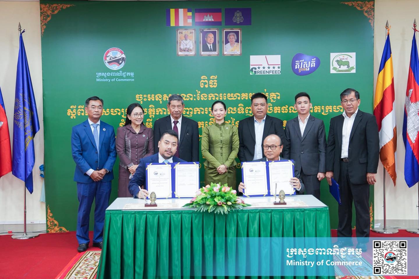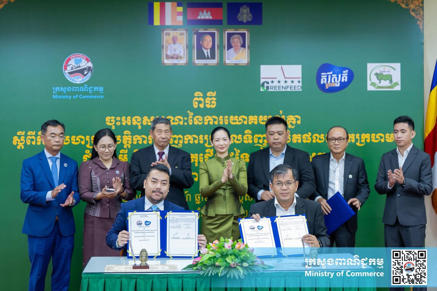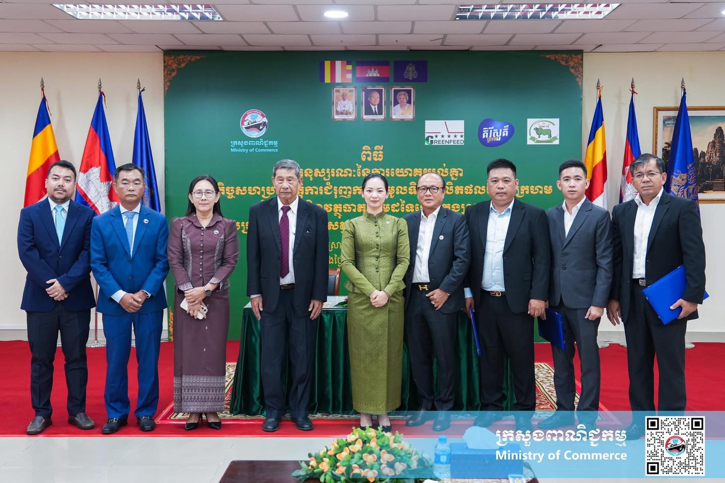 ដោយ លោកជំទាវ ចម និម្មល រដ្ឋមន្ត្រីក្រសួងពាណិជ្ជកម្ម បានចូលរួមជាអធិបតីភាពក្នុងពិធីចុះអនុស្សរណៈនៃការយោគយល់គ្នា ស្តីពី កិច្ចសហប្រតិបត្តិការជំរុញការប្រមូលទិញផលិតផលពោតក្រហម ដំឡូងមី និងវត្ថុធាតុដើមដទៃទៀតក្នុងស្រុក សម្រាប់ផលិតចំណីសត្វ រវាងក្រសួងពាណិជ្ជកម្ម ជាមួយក្រុមហ៊ុនផលិតចំណីសត្វ ចំនួន ៣ រួមមាន៖ ក្រុមហ៊ុន ខ្មែរ ហ្វ្រេស មីល ឯ.ក (Khmer Fresh Milk) ក្រុមហ៊ុនផលិតចំណីសត្វ គ្រីនហ្វីត (GREENFEED Cambodia) និងសហគ្រាសផលិតចំណីសត្វដង្ខៅប៉ាង ដោយមានវត្តមានអញ្ជើញចូលរួមពី ឯកឧត្តម លោកជំទាវ ថ្នាក់ដឹកនាំក្រសួងពាណិជ្ជកម្ម តំណាងក្រុមហ៊ុនផលិតចំណីសត្វ និងមន្ត្រីពាក់ព័ន្ធជាច្រើនរូប។