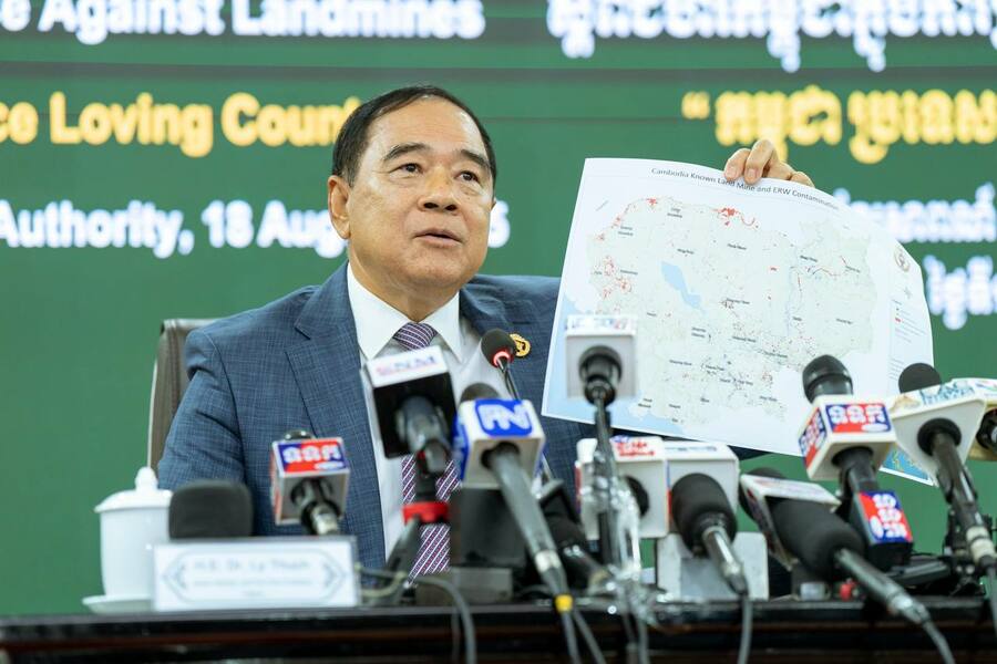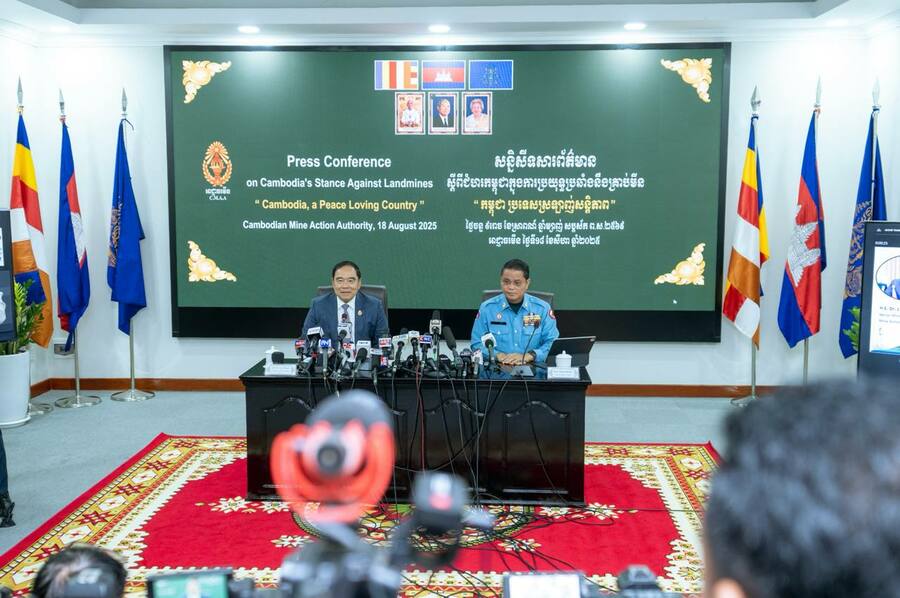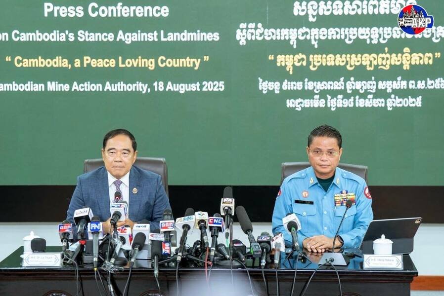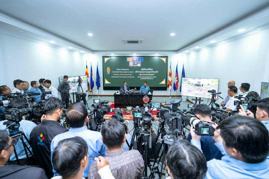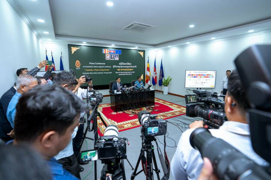 យោងតាមការចុះផ្សាយរបស់ ក្រសួងព័ត៌មាន នាថ្ងៃទី ១៨ ខែសីហា ឆ្នាំ ២០២៥ នេះ បានឱ្យដឹងថា ឯកឧត្តមបណ្ឌិត លី ធុជ ទេសរដ្ឋមន្ត្រី និងជាអនុប្រធានទី១ អាជ្ញារមីន និងឯកឧត្តម ហេង រតនា ប្រតិភូរាជរដ្ឋាភិបាល ទទួលបន្ទុកជាអគ្គនាយក នៃមជ្ឈមណ្ឌលសកម្មភាពកំចាត់មីនកម្ពុជា (ស៊ីម៉ាក់-CMAC) អញ្ជើញជាអធិបតីសន្និសីទសារព័ត៌មាន ស្តីពីជំហរកម្ពុជាក្នុងការប្រយុទ្ធប្រឆាំងគ្រាប់មីន ក្រោមប្រធានបទ “កម្ពុជា ប្រទេសស្រលាញ់សន្តិភាព” ដែលរៀបចំនៅទីស្នាក់ការអាជ្ញាធរមីន រាជធានីភ្នំពេញ នាព្រឹកថ្ងៃទី១៨ ខែសីហា ឆ្នាំ២០២៥។