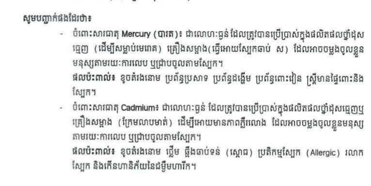 លើសពីនេះ ឧត្តមសេនីយ៍ទោ ឈឿន សុចិត្ត បានបញ្ជាក់ថែមថា៖ «ផលិតផលចំនួន ៤ មុខក្នុងចំណោមផលិតផ្សេងទៀត ដែលយកទៅពិសោធន៍ និងធ្វើតេស្ត ដែលម្ចាស់ក្រុមហ៊ុនខាងលើ Live ផ្សាយលក់ គឺជាការបោកប្រាស់ ក្លែងក្លាយ ហើយមានសារធាតុហាមឃាត់លើស ខុសពីច្បាប់អនុញ្ញាត ធ្វើឲ្យប៉ះពាល់សុខភាពយ៉ាងខ្លាំងដល់អ្នកប្រើប្រាស់»៕