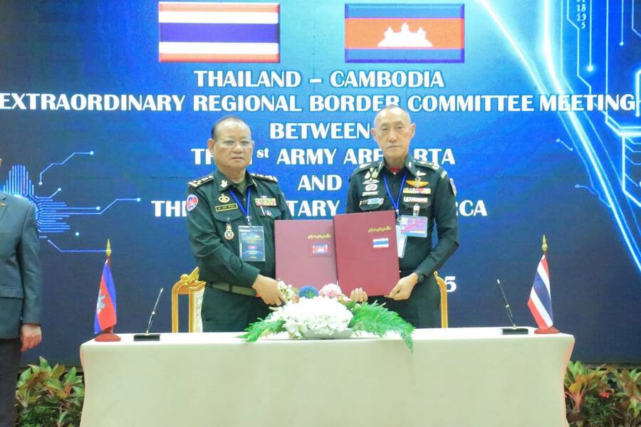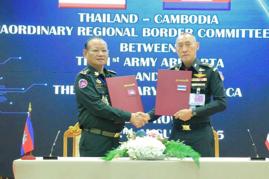 (រាជធានីភ្នំពេញ)៖ យោងតាមការចុះផ្សាយរបស់ ក្រសួងព័ត៌មាន នៅថ្ងៃទី ២២ ខែសីហា ឆ្នាំ ២០២៥ នេះ បានឱ្យដឹងថា កិច្ចប្រជុំវិសាមញ្ញរបស់គណៈកម្មាធិការព្រំដែនថ្នាក់យោធភូមិភាគកម្ពុជា-ថៃ (RBC) បញ្ចប់ដោយជោគជ័យ ភាគីកម្ពុជា និងថៃបានបញ្ជាក់ពីការប្តេជ្ញាចិត្តយ៉ាងមុតមាំ ក្នុងការអនុវត្តបទឈប់បាញ់។