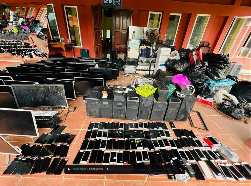 សម្ភារៈដែលរឹបអូសទាំងអស់រួមមានទូរសព្ទដៃ កុំព្យូទ័រ លិខិតឆ្លងដែន ឧបករណ៍អេឡិកត្រូនិចជាច្រើនប្រភេទ និងច្រើនពាន់គ្រឿង សុទ្ធសឹងជា ភ័ស្តុតាង ដែលអាចផ្តល់ជាតម្រុយសម្រាប់ស្វែងរកក្រុមមេខ្លោង និងវែកមុខបណ្តាញអង្គការចាត់តាំង ពាក់ព័ន្ធនឹងអំពើឆបោកទាំងនៅក្នុង និងក្រៅប្រទេស កម្ពុជា។ ទាំងនេះជាវិធានការជាបន្តបន្ទាប់ ធ្វើឡើង ក្នុងក្របខណ្ឌនៃការអនុវត្តបទបញ្ជាម៉ឺងម៉ាត់របស់រាជរដ្ឋាភិបាលកម្ពុជា។