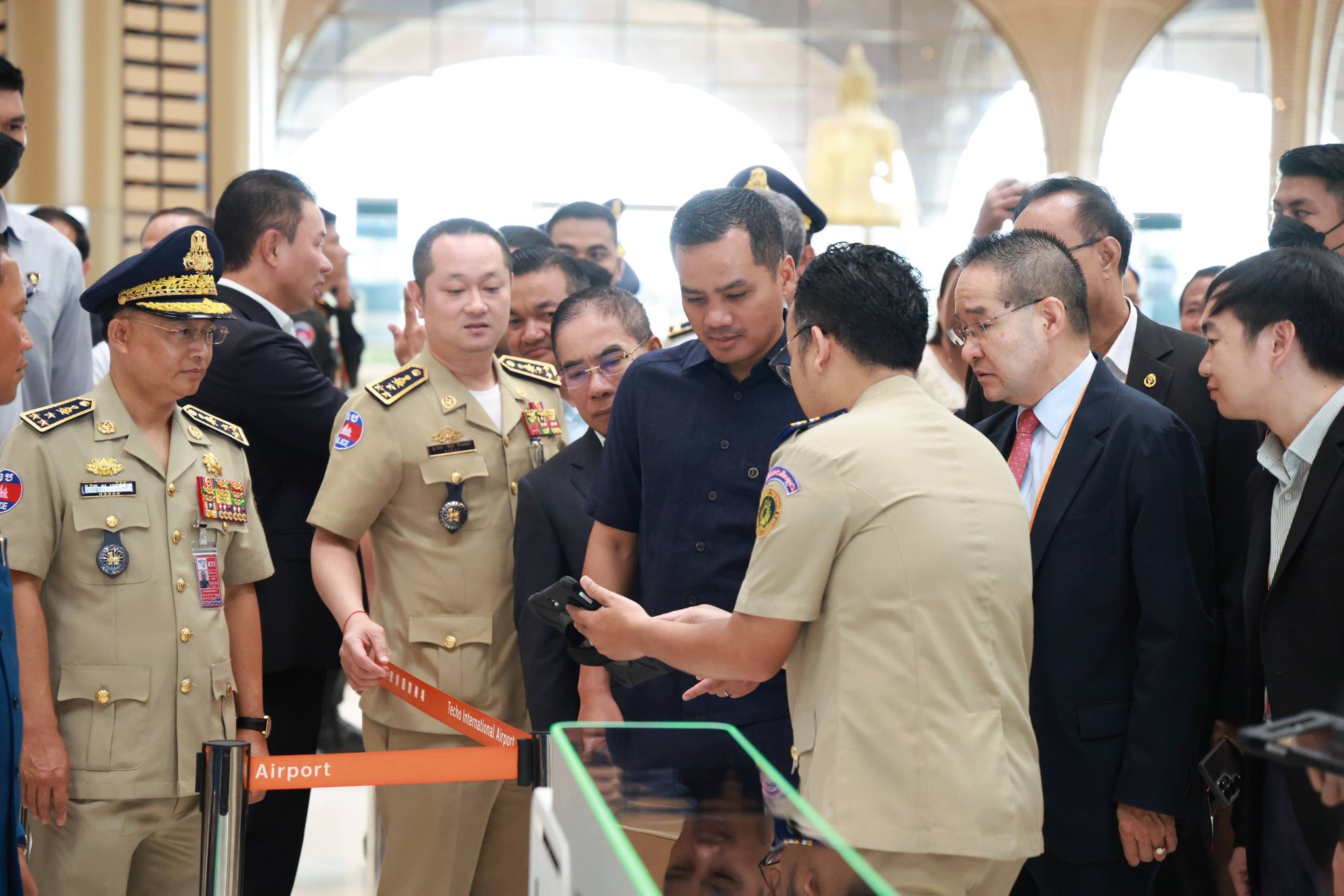 ឯកឧត្តមអភិសន្តិបណ្ឌិត ស សុខា ឧបនាយករដ្ឋមន្ត្រី រដ្ឋមន្ត្រីក្រសួងមហាផ្ទៃ បានចុះពិនិត្យការត្រៀមលក្ខណៈអនុវត្តតួនាទីភារកិច្ចរបស់មន្ត្រីអន្តោប្រវេសន៍ តាមទីតាំងសំខាន់ៗ នៅអាកាសយានដ្ឋានអន្តរជាតិដ៏ធំមួយនេះ។ ទីតាំងសំខាន់ៗ ដែលឯកឧត្តមអភិសន្តិបណ្ឌិតឧបនាយករដ្ឋមន្ត្រី បានចុះពិនិត្យនោះរួមមាន ស្ថានីយចេញដំណើរ ទីតាំង Check In ទីតាំង ត្រួតពិនិត្យ x-ray ទីតាំងត្រួតពិនិត្យអន្តោប្រវេសន៍ (ទិដ្ឋាការចេញ បញ្ជរបែបបទចេញ និង Smart Gate) ទីតាំង ច្រកអាទិភាព (Fast Track) ទីតាំង អាហាដ្ឋាន (Premium Loung & Food Court) និងបន្ទប់សេនាការរបស់ប៉ុស្តិ៍ច្រកទ្វារ និងបន្ទប់ CCTV កន្លែងបំពេញបែបបទចេញពីប្រទេសរបស់អ្នកដំណើរ ឆ្លងកាត់តាមបញ្ជរ និង Smart Gate ព្រមទាំងពិនិត្យការអនុវត្តការងារ របស់មន្ត្រី និងស្ថានភាព អ្នកដំណើរតាមរយៈ កាមេរ៉ា CCTV។