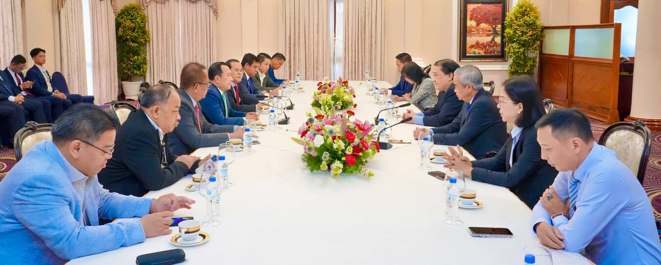 ទីក្រុងហូជីមិញ៖ យោងតាមការចុះផ្សាយរបស់ ក្រសួងព័ត៌មាន នៅថ្ងៃទី៦ ខែកញ្ញា ឆ្នាំ២០២៥ បានឱ្យដឹងថា ក្នុងឱកាសអញ្ជើញដឹកនាំគណៈប្រតិភូវិស័យទេសចរណ៍កម្ពុជាចូលរួមពិព័រណ៍ទេសចរណ៍អន្តរជាតិទីក្រុងហូជីមិញលើកទី១៩ និងបន្ទាប់ពីជំនួបជាន់ខ្ពស់ជាមួយ ឯកឧត្តមរដ្ឋមន្រ្តីក្រសួងវប្បធម៌ កីឡា និងទេសចរណ៍វៀតណាម, ឯកឧត្តមប្រធានគណៈកម្មាធិការប្រជាជនទីក្រុងហូជីមិញ និងលោក-លោកស្រីជាប្រធានក្រុមហ៊ុនទេសចរណ៍ធំៗ របស់ទីក្រុងហូជីមិញ និងប្រទេសវៀតណាម ឯកឧត្តម ហួត ហាក់ រដ្ឋមន្រ្តីក្រសួងទេសចរណ៍ និងគណៈប្រតិភូវិស័យទេសចរណ៍កម្ពុជា បានទទួលជួបពិភាក្សាការងារចង្អៀត និងជាន់ខ្ពស់ជាមួយក្រុមប្រឹក្សាភិបាលក្រុមហ៊ុន Saigontourist Group ដែលមានលោក Truong Duc Hung និងសហការីជាអ្នកគ្រប់គ្រងជាន់ខ្ពស់របស់ក្រុមហ៊ុន នៅសណ្ឋាគារដ៏សំខាន់ និងមានអាយុកាលជាង១០០ឆ្នាំរបស់ក្រុមហ៊ុនឈ្មោះ Majestic Saigon។
