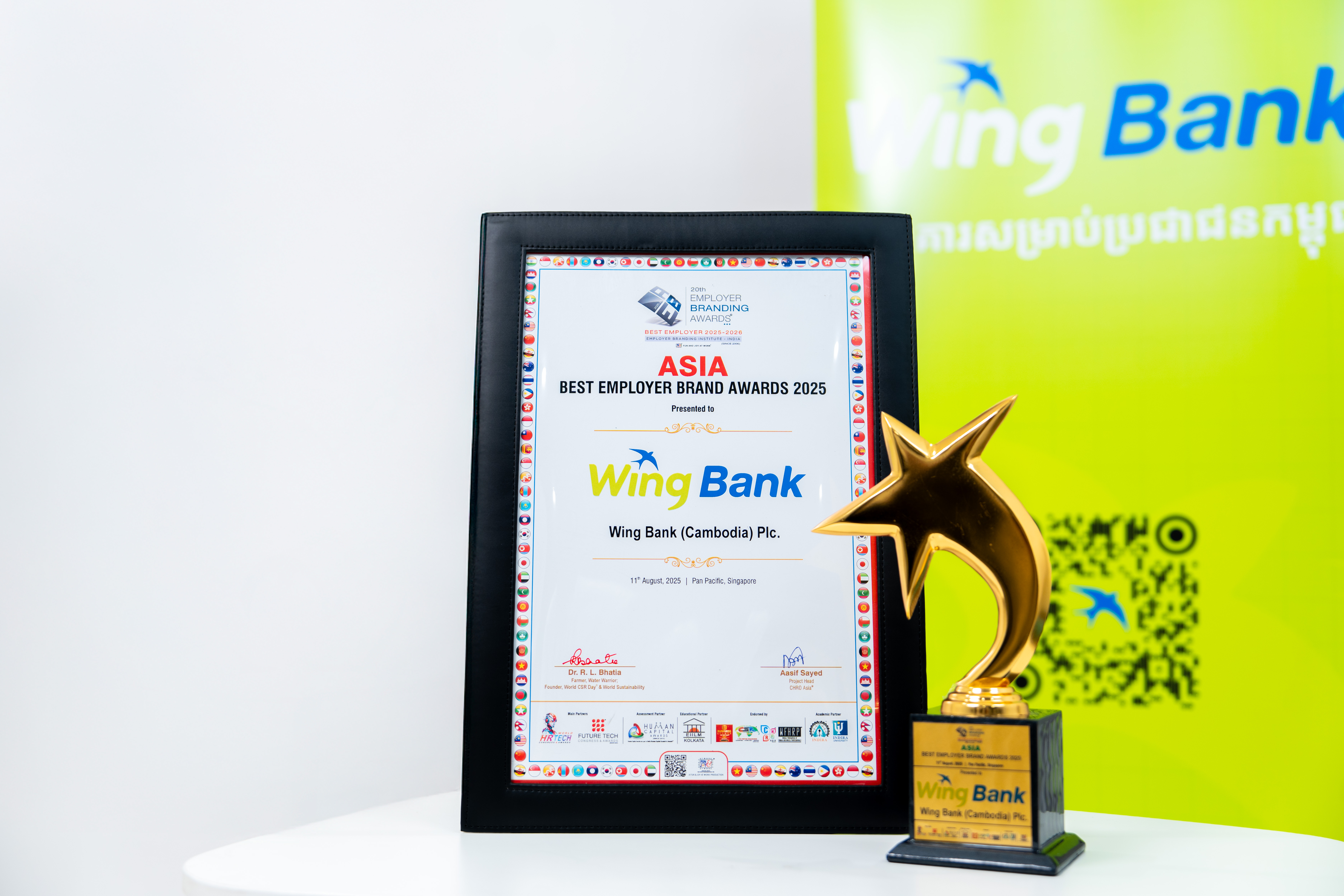 ដោយអនុវត្តយ៉ាងខ្ជាប់ខ្ជួននូវគោលការណ៍  “បុគ្គលិកជាអាទិភាព” ធនាគារ វីង (ខេមបូឌា) ម.ក បានទទួលពានរង្វាន់ “និយោជកឆ្នើមនៅតំបន់អាស៊ីប្រចាំឆ្នាំ២០២៥” ពីស្ថាប័ន Employer Branding Institute ដែលមានមូលដ្ឋាននៅប្រទេសឥណ្ឌា។ ពានរង្វាន់កិត្តិយសនេះត្រូវបានប្រគល់ជូននៅក្នុងកម្មវិធីនៃការប្រគល់ពានរង្វាន់ម៉ាកយីហោនិយោជកឆ្នើមនៅក្នុងតំបន់អាស៊ីលើកទី២០ រៀបចំឡើងនៅក្នុងប្រទេសសិង្ហបុរី ហើយនេះជាការទទួលស្គាល់ដ៏មានកិត្យានុភាពជាលើកទី៥ របស់ធនាគារ វីង ផងដែរ។