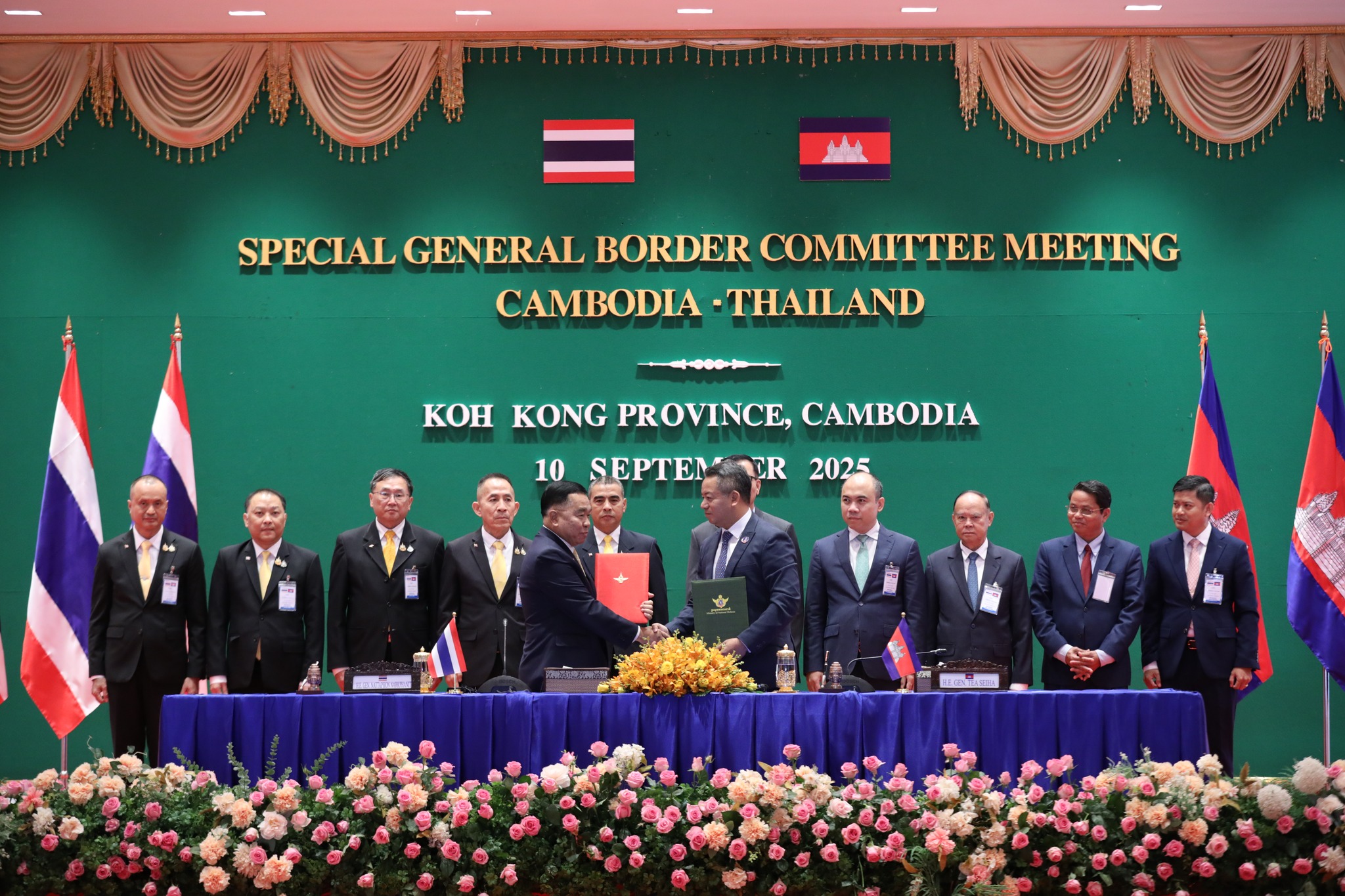 (ខេត្តកោះកុង)៖ យោងតាមការចចុះផ្សាយរបស់ ក្រសួងព័ត៌មាន នៅថ្ងៃទី ១០ ខែកញ្ញា ឆ្នាំ ២០២៥ ប្រទសកម្ពុជា និងប្រទេសថៃ បានបញ្ជាក់អំពី ការប្តេជ្ញាចិត្តអនុវត្តលទ្ធផលកិច្ចប្រជុំពិសេសរបស់គណៈកម្មាធិការព្រំដែនទូទៅកម្ពុជា-ថៃ លើកទី១។