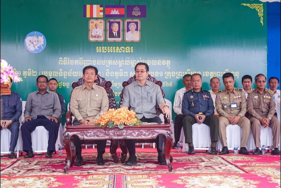(ខេត្តព្រះសីហនុ)៖ យោងតាមការចុះផ្សាយពី ក្រសួងព័ត៌មាន នៅព្រឹកថ្ងៃទី ១៥ ខែកញ្ញា ឆ្នាំ ២០២៥ ឯកឧត្តម ម៉ាង ស៊ីណេត អភិបាល នៃគណៈអភិបាលខេត្តព្រះសីហនុ និងឯកឧត្តម សុខ គាង រដ្ឋលេខាធិការ ក្រសួងរៀបចំដែនដី នគរូបនីយកម្ម និងសំណង់ បានអញ្ជើញជាអធិបតីក្នុងពិធីចែកវិញ្ញាបនបត្រសម្គាល់ម្ចាស់អចលនវត្ថុ ស្ថិតនៅភូមិ១ ភូមិ២ (ប្រមូលទិន្នន័យលើកទី២) និងភូមិ៣ សង្កាត់លេខ១ ក្រុងព្រះសីហនុ ខេត្តព្រះសីហនុ។