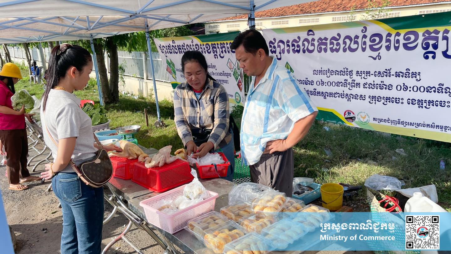 (ខេត្តក្រចេះ)៖ យោងតាម ក្រសួងពាណិជ្ជកម្ម នាថ្ងៃទី ៤ ខែ តុលា ឆ្នាំ ២០២៥ នេះបានឱ្យដឹងថា ផ្សារផលិតផលខ្មែរខេត្តក្រចេះ បាននិងកំពុងដំណើរលក់កសិផល និងផលិតផលខ្មែរ ដែលបានដាំដុះ និងកែច្នៃដោយកសិករ និងផលិតករខ្មែរនៅក្នុងខេត្តក្រចេះ នៅរៀងរាល់ថ្ងៃសុក្រ-សៅរ៍-អាទិត្យ ចាប់ពីម៉ោង ៦ព្រឹក – ៦ល្ងាច ដែលមានទីតាំងនៅផ្លូវបេតុងទឹកស្អាតក្រុងក្រចេះ ជិតស្ពានសរ ខេត្តក្រចេះ ។