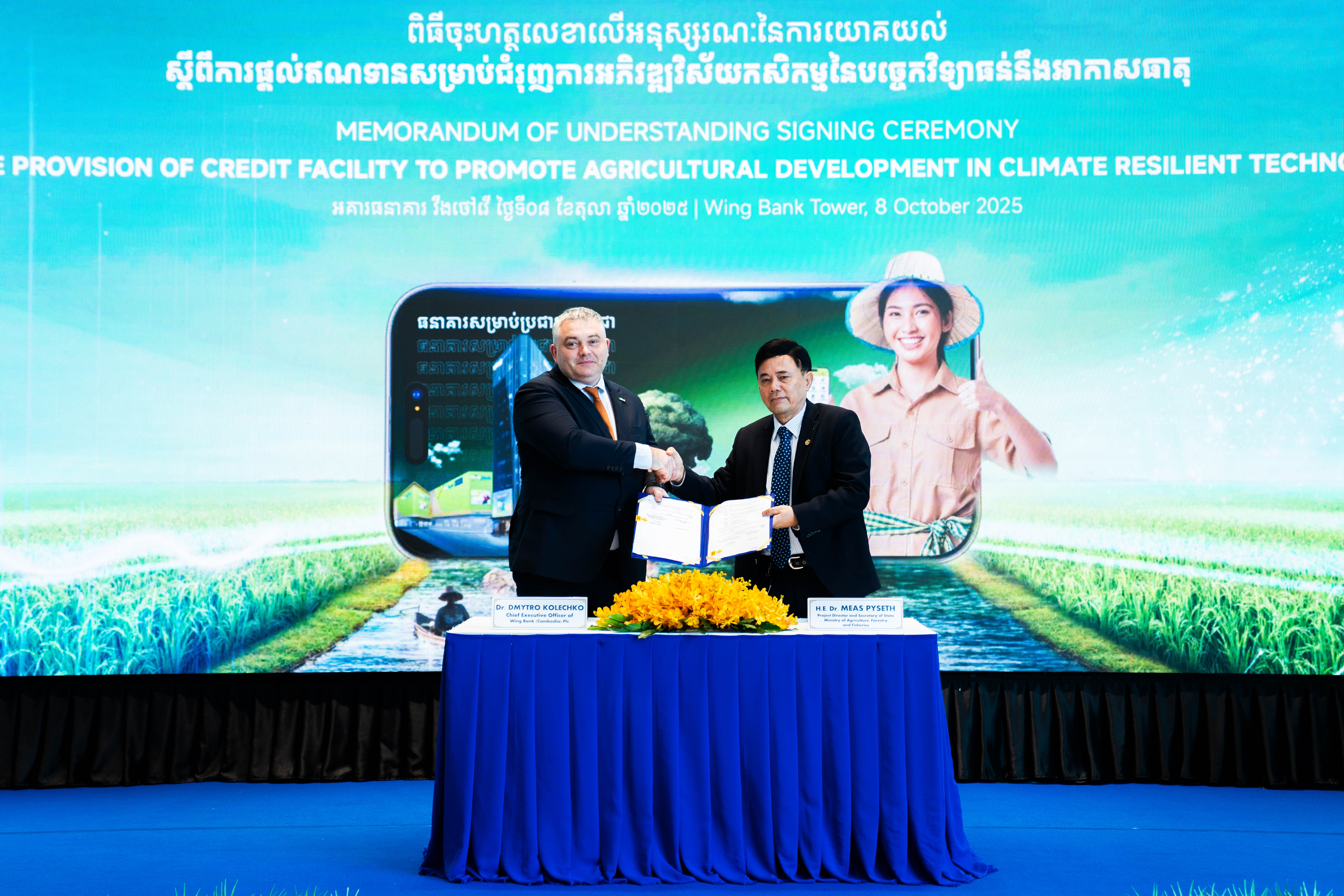 ធនាគារ វីង បានសហការជាមួយ ក្រសួងកសិកម្ម រុក្ខាប្រមាញ់ និងនេសាទ ដាក់ចេញនូវគំនិតផ្តួចផ្តើមហិរញ្ញប្បទានថ្មីមួយ ដើម្បីជួយដល់សហគមន៍កសិកម្មនៅក្នុងប្រទេសកម្ពុជា ឱ្យមានលទ្ធភាពគ្រប់គ្រាន់ក្នុងការវិនិយោគលើបច្ចេកវិទ្យាឆ្លាតវៃធន់នឹងអាកាសធាតុ។
