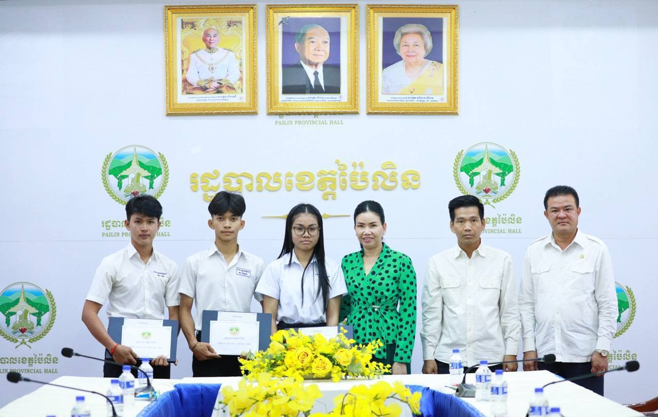 អភិបាលខេត្តប៉ៃលិន អញ្ជេីញជួបសំណេះសំណាល និងផ្តល់រង្វាន់លើកទឹកចិត្តដល់សិស្សប្រឡងជាប់និទ្ទេស A ចំនួន៣នាក់ ដោយម្នាក់ទទួលបានកុំព្យូទ័រ ១គ្រឿង និងថវិកាចំនួន ១លានរៀល