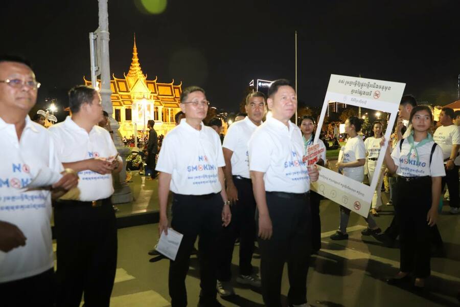 ភ្នំពេញ៖ យោងតាម ក្រសួងព័ត៍មាន នាថ្ងៃទី ១២ ខែតុលា ឆ្នាំ ២០២៥ នេះបានឱ្យដឹងថា រដ្ឋបាលរាជធានីភ្នំពេញ បានផ្សព្វផ្សាយ ហាមជក់បារីទីសាធារណៈ ឬបង្ហុយផ្សែងផលិតផលថ្នាំជក់នៅលើផ្លូវថ្មើរជើងចតុមុខ” ដែលពិធីនេះធ្វើឡើង នៅរាត្រីថ្ងៃទី១១ ខែតុលា ឆ្នាំ២០២៥ ដោយមានការចូលរួមពី ឯកឧត្ដម ហួត ហៃ អភិបាលរងរាជធានីភ្នំពេញ តំណាង ឯកឧត្ដម ឃួង ស្រេង អភិបាលរាជធានីភ្នំពេញ ។