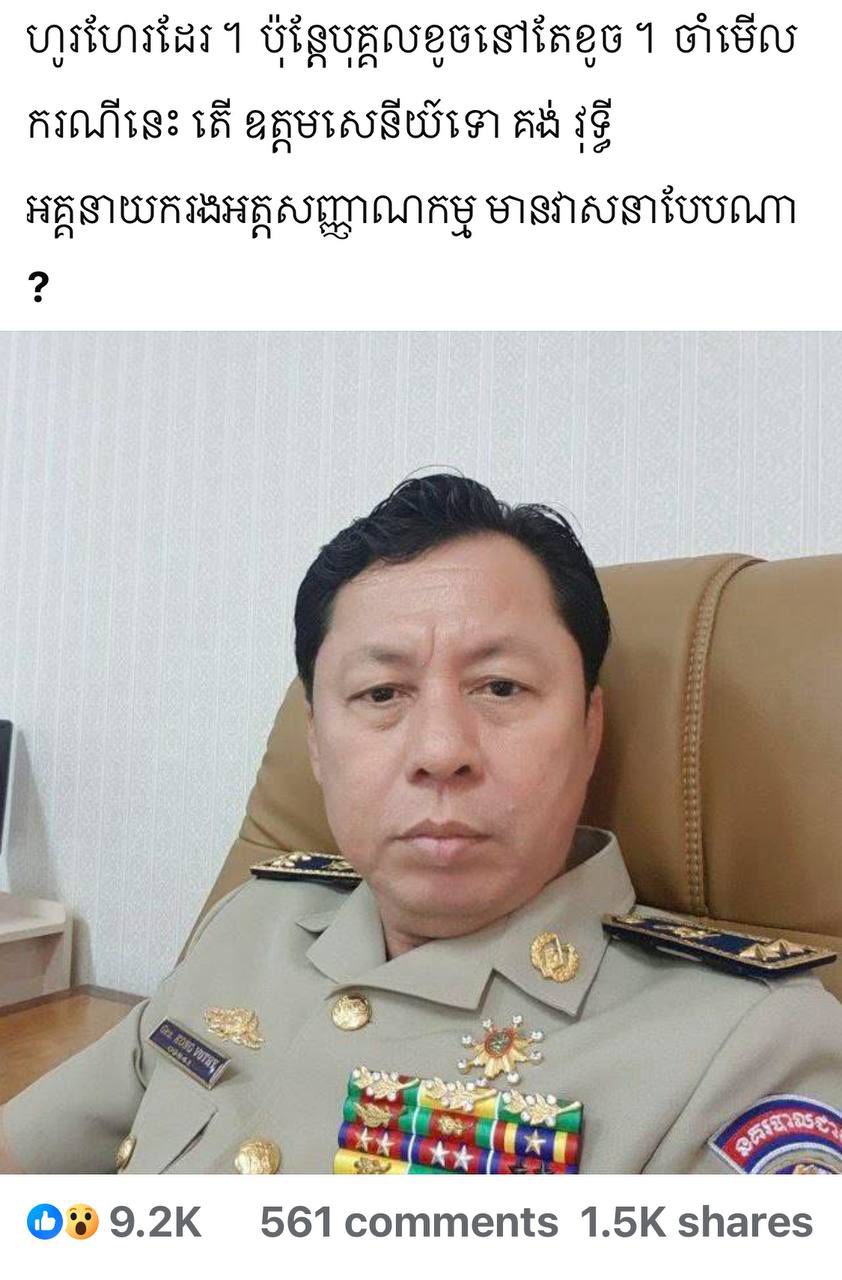 អគ្គនាយកដ្ឋានអត្តសញ្ញាណកម្មកំពុងស្រាវជ្រាវស៊ើបអង្កេតលើឧត្តមសេនីយ៍ទោ គង់ វុទ្ធី ពាក់ព័ន្ធរឿងទឹកប្រាក់ ២លានដុល្លារ