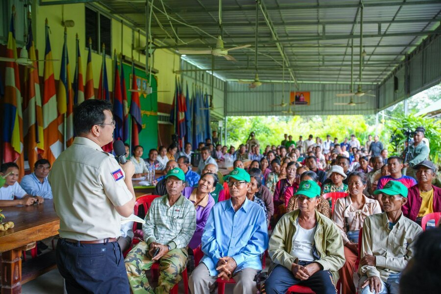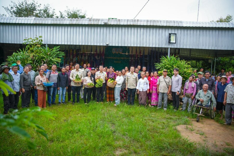 កាលពីរសៀលថ្ងៃទី ២៩ ខែតុលា ឆ្នាំ ២០២៥ ឯកឧត្តម ឌិត ទីណា រដ្ឋមន្រ្តីក្រសួងកសិកម្ម រុក្ខាប្រមាញ់ និងនេសាទ បានអញ្ជើញបន្តជួបសំណេះសំណាលជាមួយពុកម៉ែបងប្អូនជាសមាជិកសហគមន៍កសិកម្មទំនើបដំណាំស្រូវ-អង្ករសុវត្ថិភាព នៅស្រុកមោងឬស្សី ខេត្តបាត់ដំបង ដែលទើបចាប់ផ្តើមធ្វើផលិតកម្មស្រូវស្រងែស្រាលតាមកិច្ចសន្យាក្នុងតម្លៃ៩៥០៛ ក្នុងមួយគីឡូក្រាម។