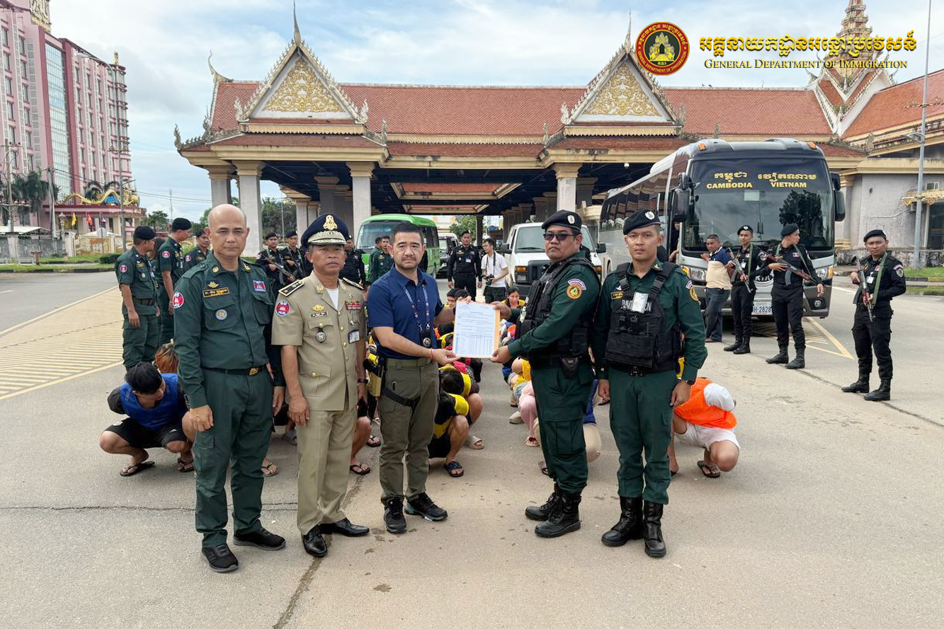 គួរបញ្ជាក់ថា កាលពីថ្ងៃទី ២៩ ខែតុលា ឆ្នាំ ២០២៥ កន្លងទៅ តាមអនុសាសន៍ដ៏ខ្ពង់ខ្ពស់ ឯកឧត្តមអភិសន្តិបណ្ឌិត ឧបនាយករដ្ឋមន្ត្រី រដ្ឋមន្ត្រីក្រសួងមហាផ្ទៃ ឯកឧត្តម សន្តិបណ្ឌិត និងថ្នាក់ដឹកនាំក្រសួងមហាផ្ទៃ ឯកឧត្តម ឧត្តមសេនីយ៍ឯក សុខ វាសនា អគ្គនាយកអន្តោប្រវេសន៍ បានណែនាំឱ្យ នាយកដ្ឋានស៊ើបអង្កេត និងអនុវត្តនីតិវិធី ធ្វើការបណ្តេញជនជាតិ វៀតណាម សរុបចំនួន ៥៩នាក់ (ស្រី១៤នាក់) ចេញពីព្រះរាជាណាចក្រកម្ពុជា តាមប៉ុស្តិ៍នគរបាលច្រកទ្វារព្រំដែនអន្តរជាតិព្រែកចាក ខេត្តកំពត ករណីលួចស្នាក់នៅធ្វើការងារខុសច្បាប់ គ្មានលិខិតឆ្លងដែន (Online Scam)។