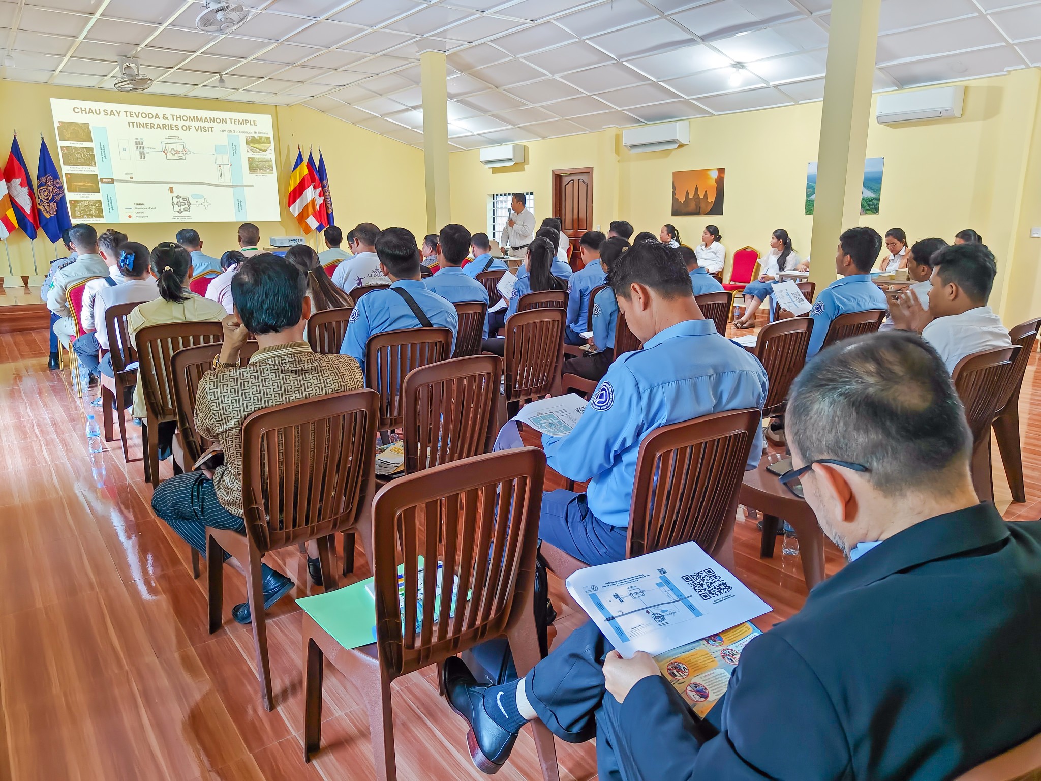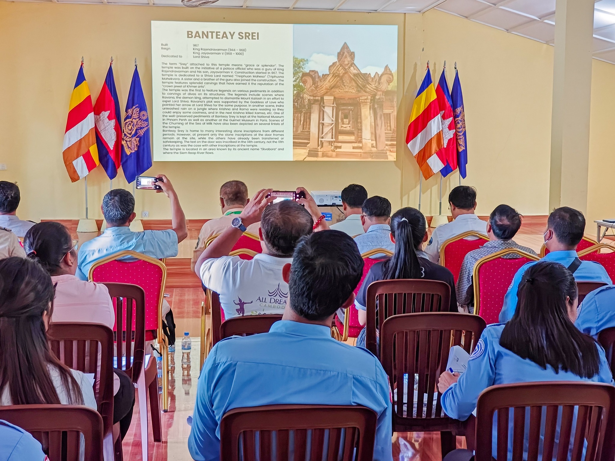 សូមជម្រាបថា សិក្ខាសាលាខាងលើធ្វើឡើងនៅនាយកដ្ឋានសណ្ដាប់ធ្នាប់ ដោយមានអ្នកចូលរួមមកពី រដ្ឋបាលខេត្តសៀមរាប មន្ទីរទេសចរណ៍ មន្ទីរបរិស្ថាន អង្គភាពនគរបាលការពារបេតិកភណ្ឌប្រចាំ​តំបន់អង្គរ អង្គភាពនគរបាលទេសចរណ៍ គ្រឹះស្ថានអង្គរ ក្រុមហ៊ុនទេសចរណ៍ មគ្គុទ្ទេសក៍ទេសចរណ៍ សមាគមដឹកជញ្ជូន និងមន្រ្តីបច្ចេកទេសជំនាញរបស់អាជ្ញាធរជាតិអប្សរា៕