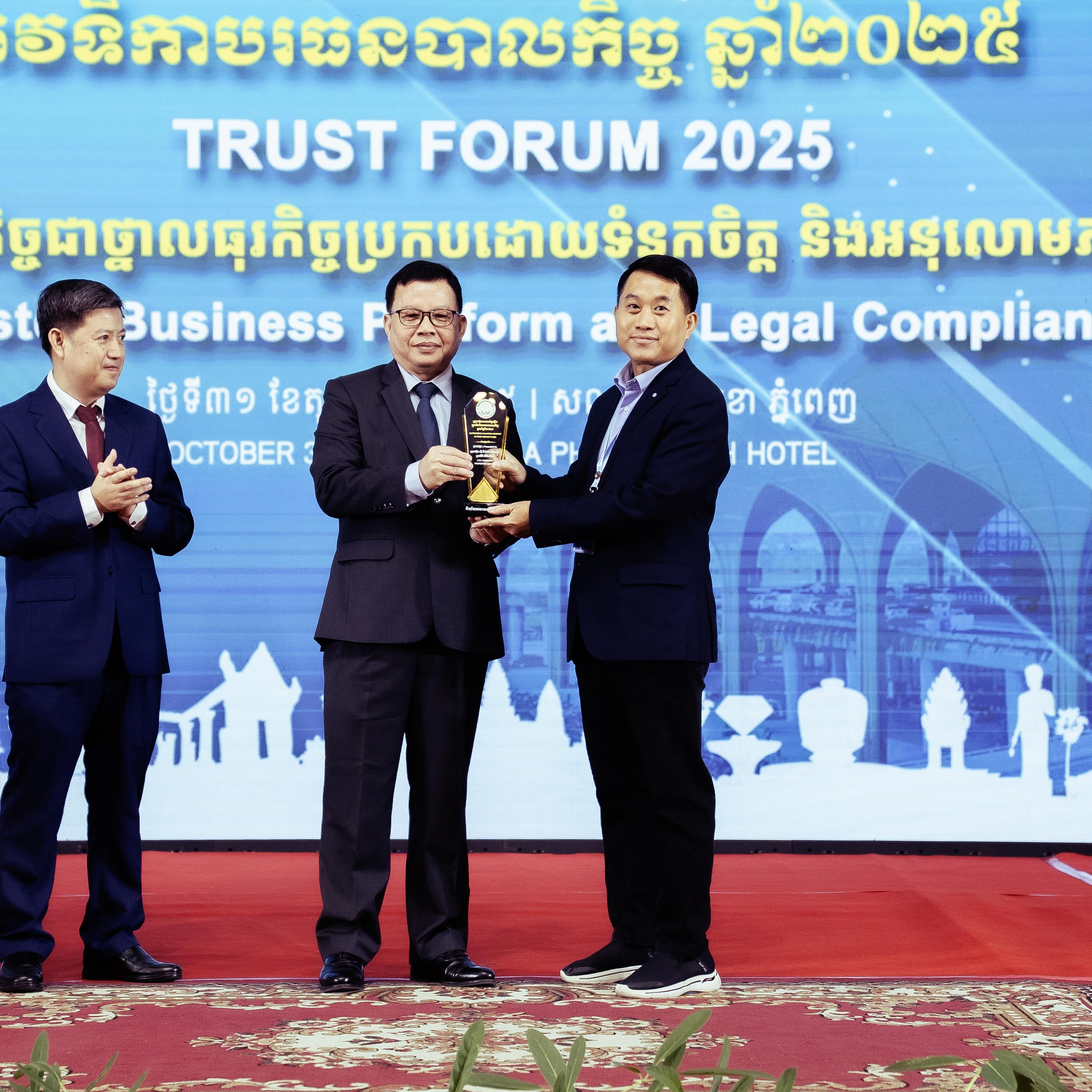 ពានរង្វាន់នេះត្រូវបានប្រគល់ជូនក្រោម អធិបតី ភាពឯកឧត្តម រស់ សីលវ៉ា រដ្ឋលេខាធិការក្រសួងសេដ្ឋកិច្ច និងហិរញ្ញវត្ថុ នៅក្នុងកម្មវិធី “វេទិកាបរធនបាលកិច្ច ឆ្នាំ២០២៥”។