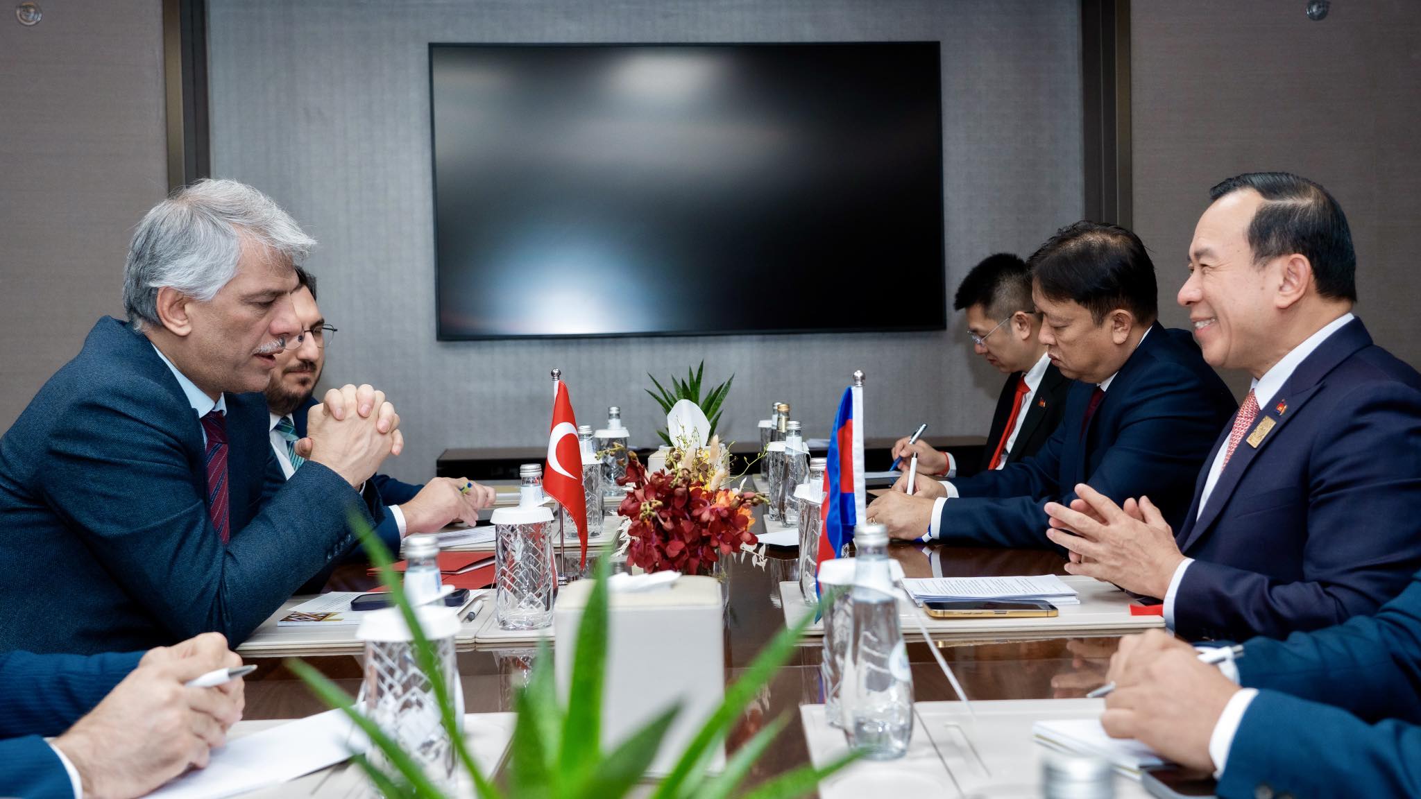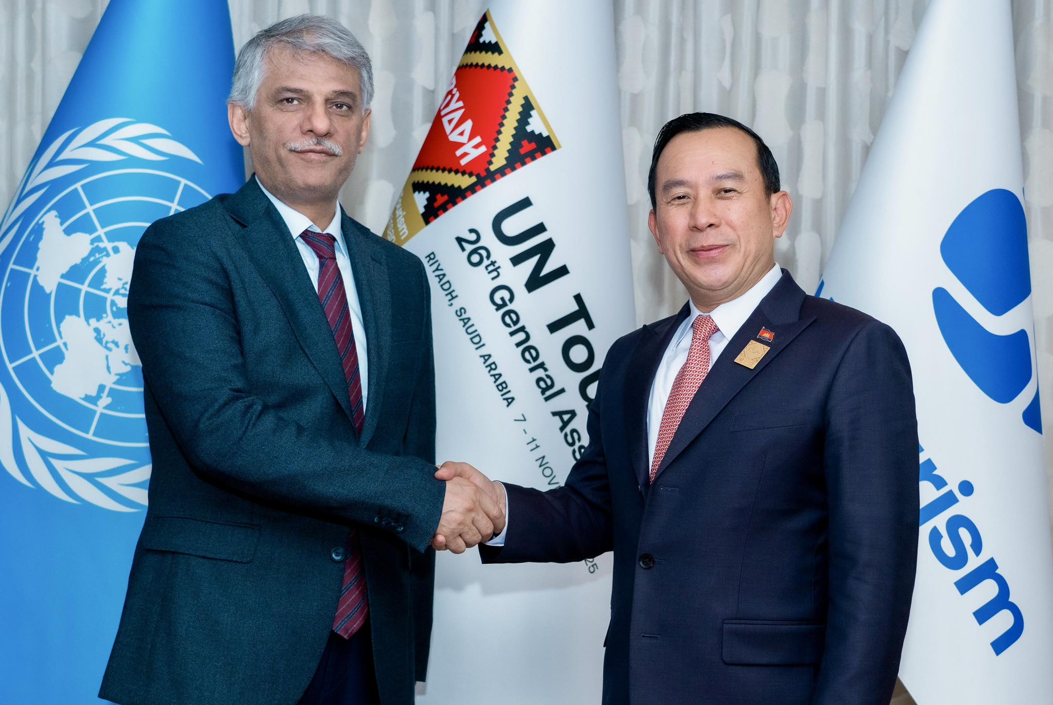 ក្នុងឱកាសនោះដែរ គណៈប្រតិភូជាន់ខ្ពស់ក្រសួងទេសចរណ៍ចូលរួមមហាសន្និបាតអង្គការទេសចរណ៍សហប្រជាជាតិលើកទី២៦ (UN Tourism- 26th General Assembly) នៅរាជធានីរីយ៉ាដ ឯកឧត្តម ហួត ហាក់ រដ្ឋមន្រ្តីក្រសួងទេសចរណ៍ បានទទួលជួបពិភាក្សាការងារ និងផ្លាស់ប្តូរយោបល់ស៊ីជម្រៅជាមួយឯកឧត្តម Nadir Alpaslan អនុរដ្ឋមន្រ្តីវប្បធម៌ និងទេសចរណ៍តួកគីយ៉េ ស្តីពីការអនុវត្តអនុស្សរណៈនៃការយោគយល់គ្នាលើកិច្ចសហប្រតិបត្តិការទេសចរណ៍រវាងប្រទេសទាំងពីរដែលបានចុះកន្លងមក ឱ្យកាន់តែជាក់ស្តែង និងប្រកបដោយប្រសិទ្ធិភាព និងប្រសិទ្ធិផលខ្ពស់តាមរយៈការបង្កើតក្រុមការងារបច្ចេកទេស ផែនការសកម្មភាព និងព្រឹត្តិការណ៍ជំរុញទេសចរណ៍ជាដើម ដើម្បីបង្កើនកំណើនភ្ញៀវទេសចរជាតិ និងអន្តរជាតិ ព្រមទាំងសន្ទុះវិនិយោគលើវិស័យទេសចរណ៍រវាងប្រទេសទាំងពីរ ស្របពេលដែលមានការតភ្ជាប់តាមផ្លូវអាកាសនាពេលខាងមុខរវាងទីក្រុងអ៊ីស្តាន់ប៊ុល និងរាជធានីភ្នំពេញ ដោយក្រុមហ៊ុនអាកាសចរណ៍ Turkish Airlines៕