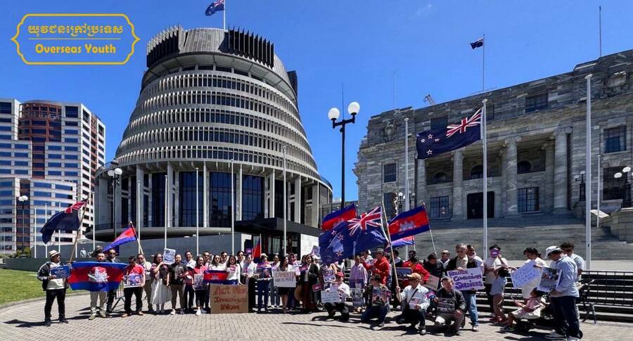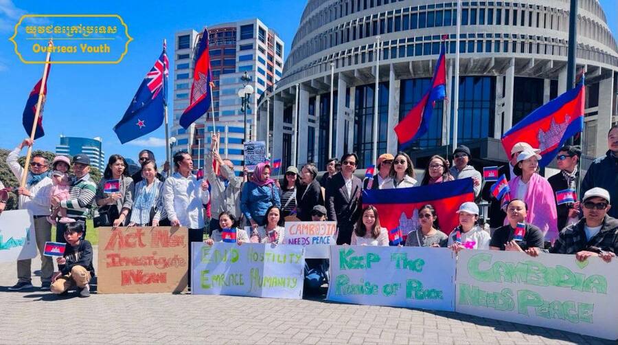 ប្រជាពលរដ្ឋខ្មែររស់នៅក្នុងរដ្ឋធានីវ៉ែល្លីង ប្រទេសនូវ៉ែលហ្សេឡង់ ជួបជុំគ្នានៅមុខរដ្ឋសភារដ្ឋធានីវ៉ែល្លីងតុន ដើម្បីប្រកាសថ្កោលទោសយ៉ាងដាច់អហង្ការ ចំពោះទង្វើបា.ញ់ប្រហារបង្កដោយភាគីថៃ មកលើពលរដ្ឋស្លូតត្រង់ខ្មែរ
