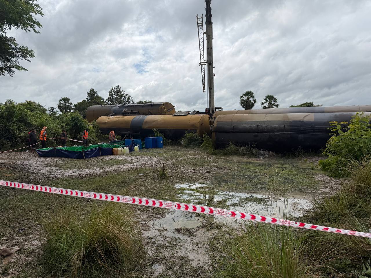 នៅរសៀលថ្ងៃទី ១៧ ខែវិច្ឆិកា ឆ្នាំ ២០២៥ នេះ ក្រសួងបរិស្ថាន បានបញ្ជាក់ថា ក្រសួងបរិស្ថាន បានចាត់បញ្ជូនមន្រ្តីជំនាញចុះពិនិត្យនិងធ្វើការទប់ស្កាត់បន្ទាន់ការលេចធ្លាយប្រេងចេញពីទូរថភ្លើង ដែលបានក្រឡាប់ធ្លាក់ផ្លូវនៅក្នុងភូមិសាស្រ្តស្រុកបាកាន ខេត្តពោធិ៍សាត់។