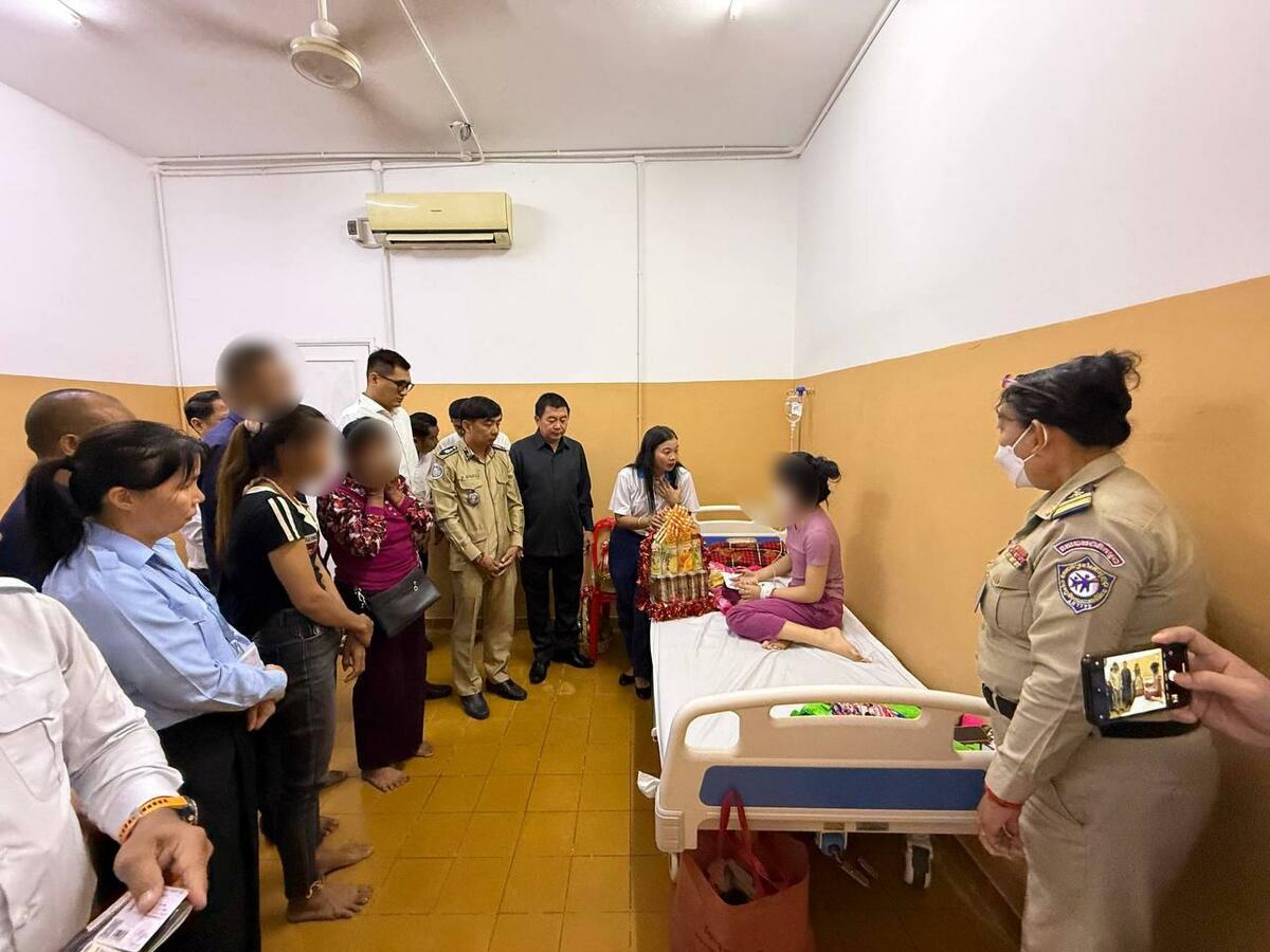 យោងតាម ក្រសួងព័ត៍មាន នាព្រឹកថ្ងៃទី ១៨ ខែវិច្ឆិកា ឆ្នាំ២០២៥ បានឱ្យដឹងថា នៅមន្ទីរពេទ្យបង្អែកខេត្តបាត់ដំបង ឯកឧត្តម សេង សក្តា រដ្ឋលេខាធិការក្រសួងការងារ និងបណ្តុះបណ្តាលវិជ្ជាជីវៈ តំណាងដ៏ខ្ពង់ខ្ពស់ ឯកឧត្តម ហេង សួរ រដ្ឋមន្ត្រីក្រសួងការងារ និងបណ្តុះបណ្តាលវិជ្ជាជីវៈ ព្រមទាំងមានការចូលរួមពីតំណាងសមាគមទីភ្នាក់ងារជ្រើសរើសពលករកម្ពុជា (ACRA), មណ្ឌលធនធានពលករទេសន្តរប្រវេសន៍ (MRC) របស់គម្រោង ILO-PROTECT និងតំណាងក្រុមការងារយុវជន ESEA អញ្ជើញជួបសួរសុខទុក្ខពលការិនីខ្មែរម្នាក់ដែលត្រូវបានក្រុមទាហានឈុតខ្មៅថៃចាប់រំលោភបូកយ៉ាងសាហាវព្រៃផ្សៃយង់ឃ្នង គ្មានមនុស្សធម៌ កាលពីថ្ងៃទី១៥ ខែវិច្ឆិកា ឆ្នាំ២០២៥ ខណៈពេលដែលពលការិនីរងគ្រោះ និងពលរដ្ឋកម្ពុជា ១២នាក់ផ្សេងទៀតធ្វើដំណើរឆ្លងដែនពីប្រទេសថៃចូលមកទឹកដីកម្ពុជា។