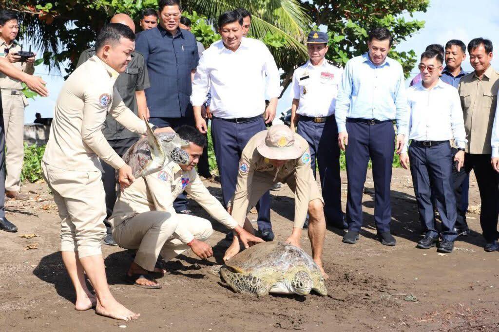 ចំពោះការព្រលែងអណ្តើកចូលសមុទ្រវិញនេះធ្វើឡើង ករោមអធិបតីភាព ឯកឧត្តម សាយ សំអាល់ ឧបនាយករដ្ឋមន្រ្តី រដ្ឋមន្រ្តីក្រសួងរៀបចំដែនដី នគរូបនីយកម្ម និងសំណង់ និងជាប្រធានក្រុមការងាររាជរដ្ឋាភិបាលចុះជួយមូលដ្ឋានខេត្តកែប នៅរសៀលថ្ងៃទី ១៨ ខែវិច្ឆិកា ឆ្នាំ ២០២៥។