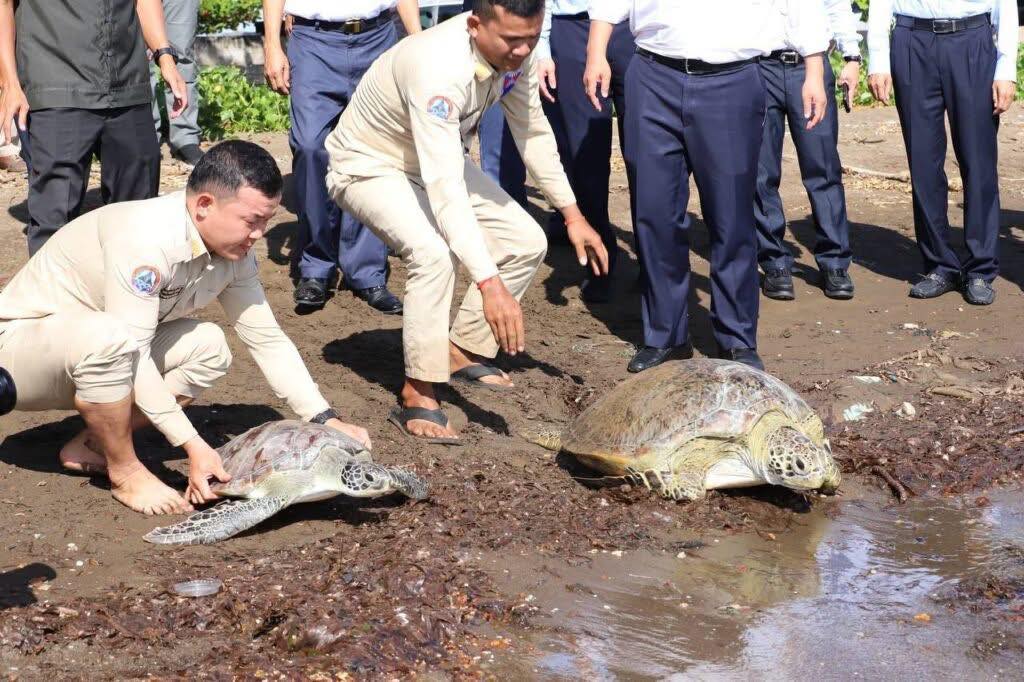 (ខេត្តកែប)៖ យោងតាមការចុះផ្សាយពី ក្រសួងព័ត៌មាន នៅថ្ងៃទី ១៩ ខែវិច្ឆិកា ឆ្នាំ ២០២៥ នេះ បានឱ្យដឹងថា អណ្តើកសមុទ្រចំនួន ២ក្បាល ត្រូវបានព្រលែងចូលសមុទ្រវិញ ក្រោយទទួលបានពីអ្នកនេសាទ នៅខេត្តកែប។