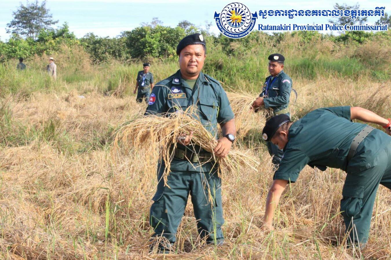 កងកម្លាំងនគរបាលស្រុកកូនមុំ ចុះជួយច្រូតកាត់ប្រមូលផលស្រូវជូនដល់គ្រួសារវរៈកងទ័ព ដែលជាប់ភារកិច្ចការពារព្រំដែនជួរមុខ (កម្ពុជា-ថៃ)