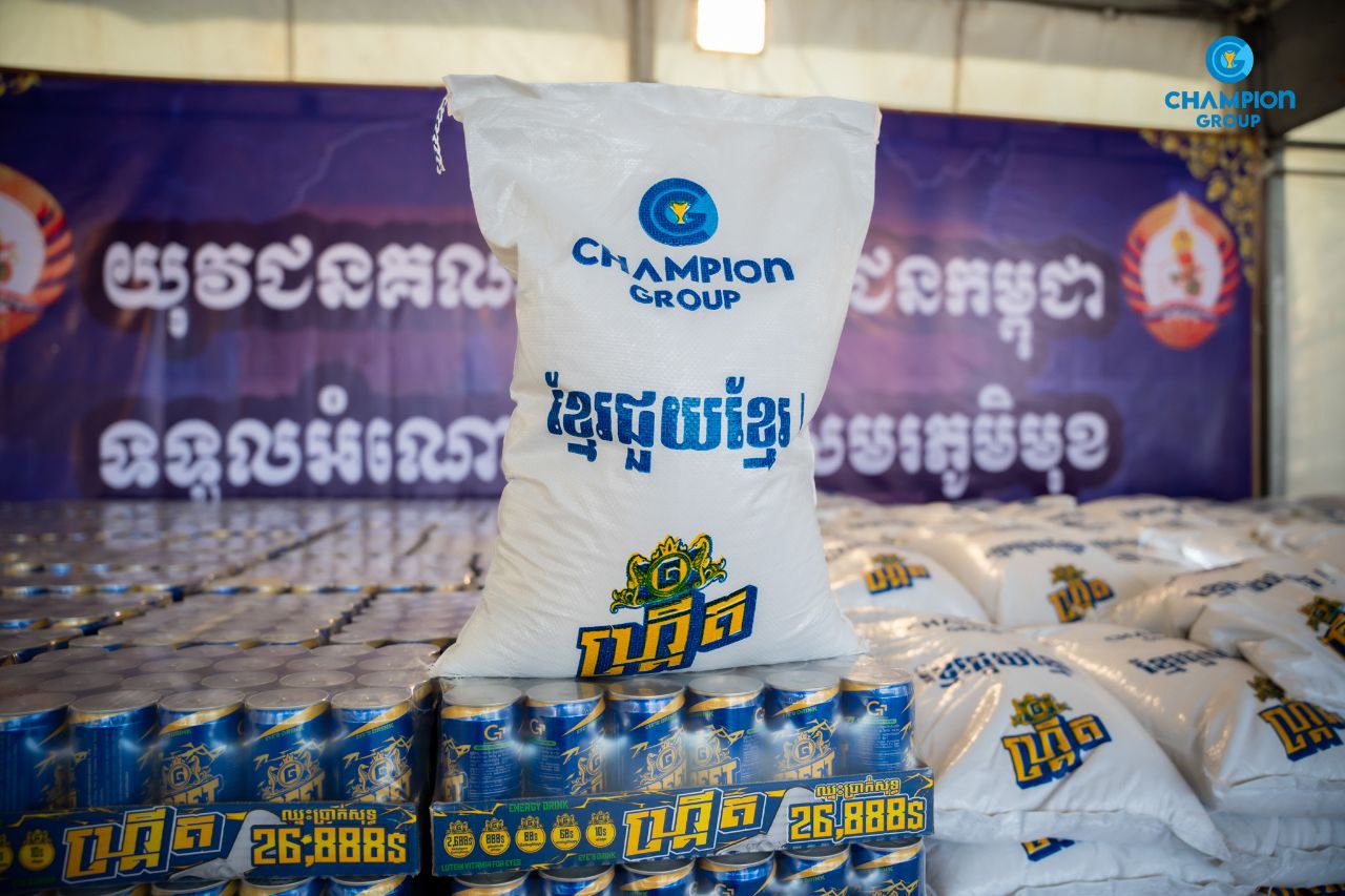 នាងខ្ញុំសូមបញ្ជាក់ជូនផងដែរថា ក្រៅពីអំបុក ក្រុមហ៊ុនឆេមពានគ្រុប ក៏បាននាំយកអង្ករចំនួន១៥តោន និងភេសជ្ជៈ ហ្រ្គីតចំនួន ១៥០០កេស ទៅប្រគល់ជូនដល់យុវជនថ្នាក់កណ្តាលផងដែរ កាលពី ព្រឹកថ្ងៃទី ១៤ ខែធ្នូ ឆ្នាំ២០២៥ ។ ក្រុមហ៊ុន ឆេមពានគ្រុប របស់លោកជំទាវ គឺជាក្រុមហ៊ុនខ្មែរ ១០០% ក្នុងនោះផលិតផល រួមមាន ភេសជ្ជៈ ប៉ូវកម្លាំង ហ្រ្គីត ស្រាបៀរហ្រ្គីត ភេសជ្ជ:ប៉ូវកម្លាំង ឆេមពានអាយស៍ ឆេមពានហ្រ្គីន និង ថប់អាប់ ខ្មែរគាំទ្រផលិតផលខ្មែរ។