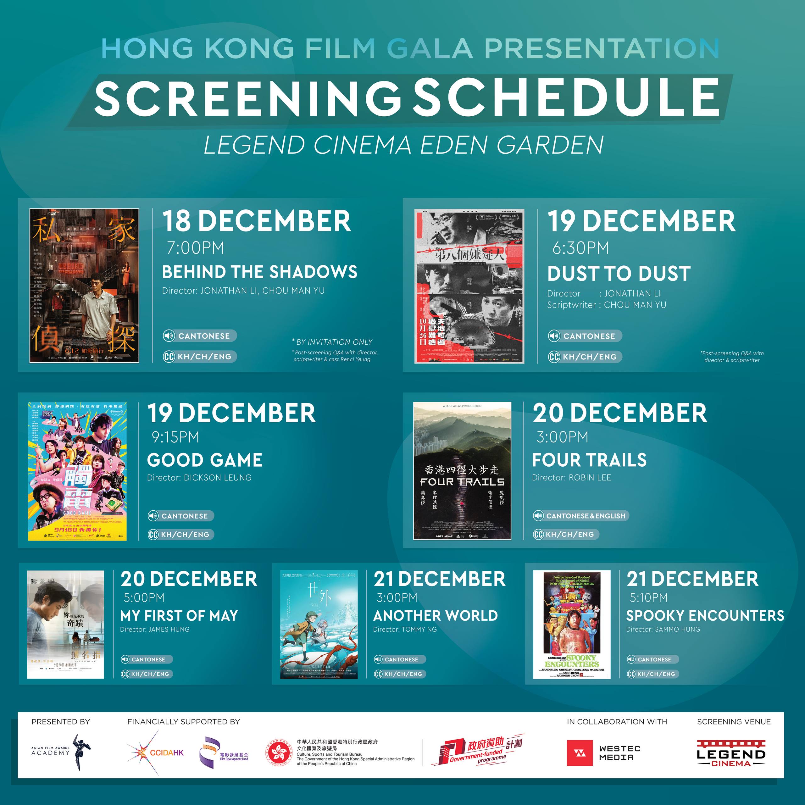 កម្មវិធីនេះត្រូវបានរៀបចំឡើងដោយ បណ្ឌិតសភាពានរង្វាន់ភាពយន្តអាស៊ី (AFFA) និងសហការរៀបចំជាមួយក្រុមហ៊ុន Westec Media Limited ជាមួយនឹងជំនួយហិរញ្ញវត្ថុពី ទីភ្នាក់ងារអភិវឌ្ឍន៍ឧស្សាហកម្មច្នៃប្រឌិត និងវប្បធម៌របស់ហុងកុង (CCIDA) មូលនិធិអភិវឌ្ឍន៍ភាពយន្ត (FDF) និង ដៃគូរ ទីតាំង រោងភាពយន្ត លេជេន។