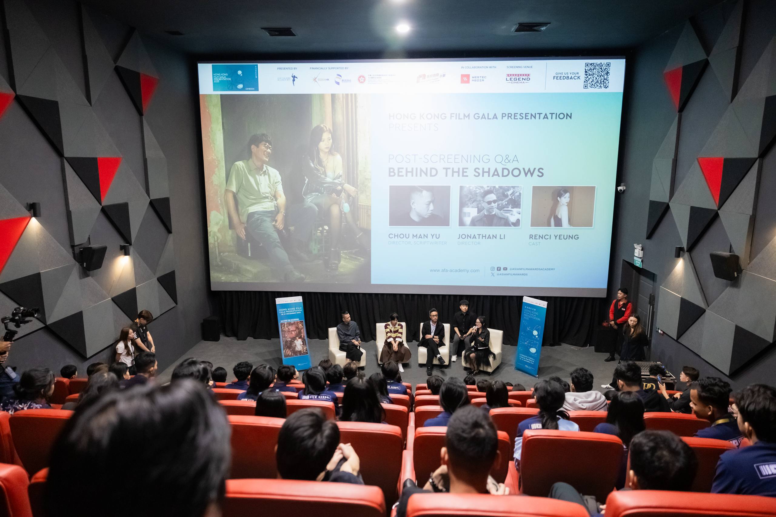 កម្មវិធីសម្ពោធ បានធ្វើឡើងនៅថ្ងៃទី១៨ ខែធ្នូ នៅរោងភាពយន្ត លេជេន អេដេន ជាមួយការចាក់បញ្ចំងភាពយន្ត បើកកម្មវិធី គឺភាពយន្ត “Behind the Shadows” នេះ ក៏មានការចូលរួមពី ភ្ញៀវកិត្តិយស សិស្ស និស្សិត ពីវិទ្យាស្ថាន ប៉េ អេស អឺ និង អ្នកដឹកនាំរឿង តារាសម្ដែង ហុងកុង ផងដែរ នោះគឺ