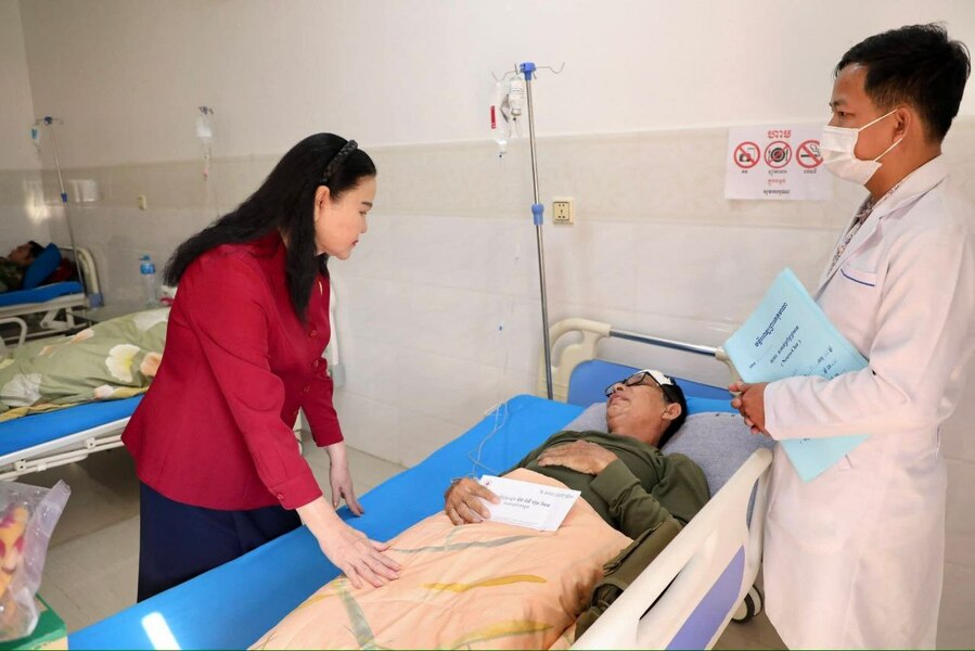 សម្ដេចកិត្ដិព្រឹទ្ធបណ្ឌិត ប៊ុន រ៉ានី ហ៊ុនសែន បានលើកទឹកចិត្ត ផ្តល់ភាពកក់ក្តៅ និងក្តីសង្ឃឹម ដល់វីរយុទ្ធជនការពារបូរណភាពទឹកដីដ៏អង់អាចក្លាហាន ដែលកំពុងសម្រាកព្យាបាលនៅតាមមន្ទីរពេទ្យនានានៅរាជធានីភ្នំពេញ