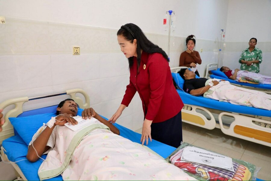 យោងតាម ក្រសួងព័ត៍មាន នាថ្ងៃទី២០ ខែធ្នូ ឆ្នាំ២០២៥ នេះបានឱ្យដឹងថា សម្ដេចកិត្ដិព្រឹទ្ធបណ្ឌិត ប៊ុន រ៉ានី ហ៊ុនសែន ប្រធានកាកបាទក្រហមកម្ពុជា បានអញ្ជើញជាលើកទី២ ក្នុងការចុះសួរសុខទុក្ខវីរយុទ្ធជនការពារបូរណភាពទឹកដីដ៏អង់អាចក្លាហាន ដែលរងរបួស និងផ្សែងពុលក្នុងសមរភូមិ កំពុងព្យាបាលនៅតាមមន្ទីរពេទ្យចំនួន៥ ក្នុងរាជធានីភ្នំពេញ។ នេះជាការចុះសួរសុខទុក្ខជាលើកទី២ របស់អ្នកម្តាយមនុស្សធម៌ ដើម្បីលើកទឹកចិត្ត និងផ្តល់ភាពកក់ក្តៅ ដល់វីរយុទ្ធជនដ៏អង់អាចក្លាហានរបស់យើង ដែលការចុះលើកទី១ កាលពីថ្ងៃទី១៥-១៦ ខែធ្នូ កន្លងទៅ។