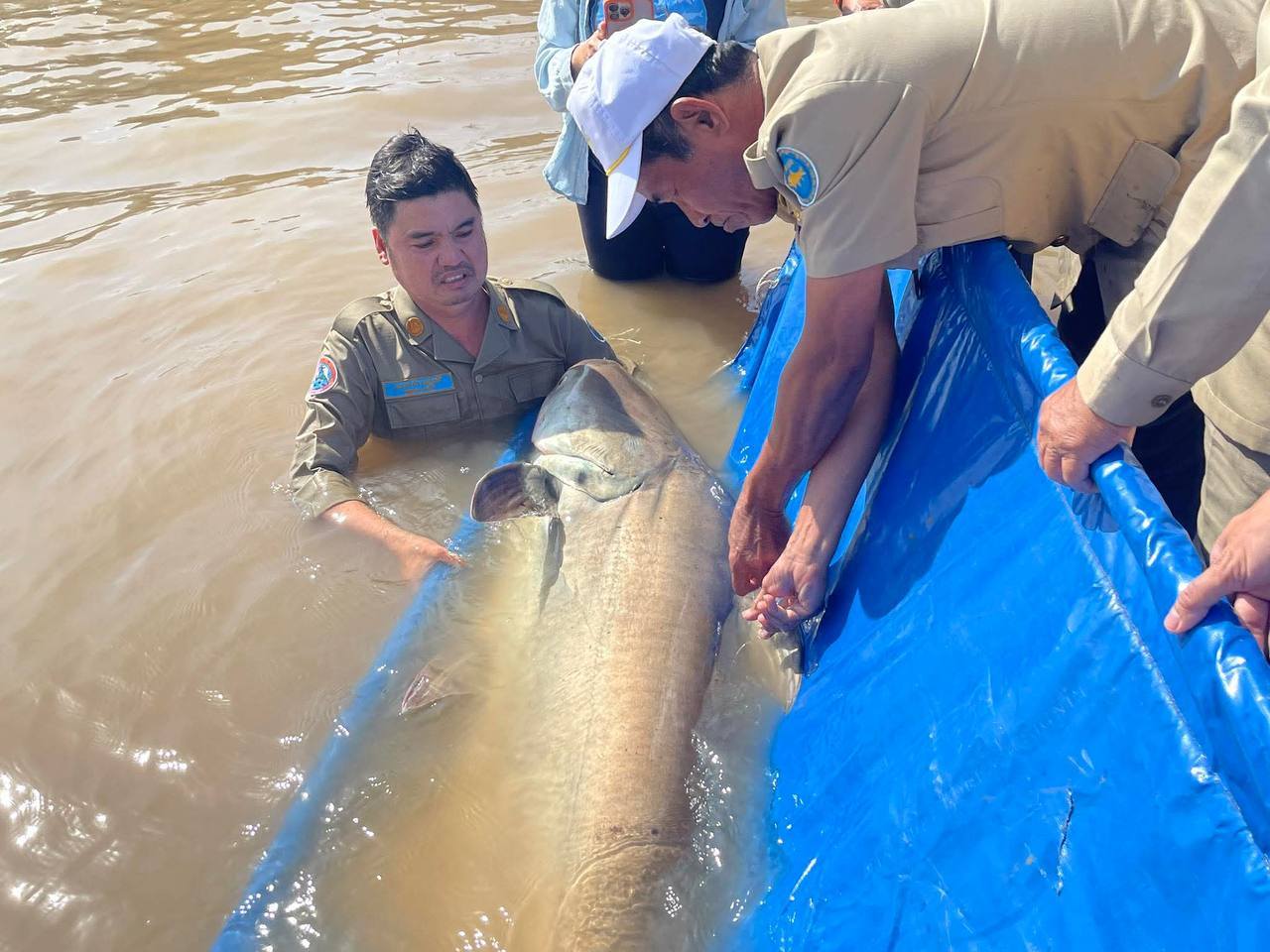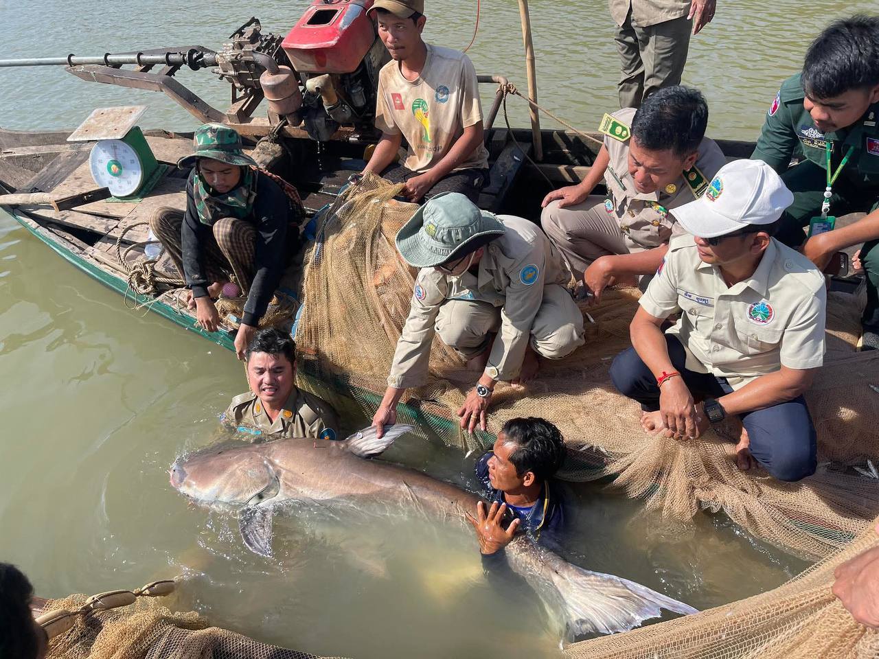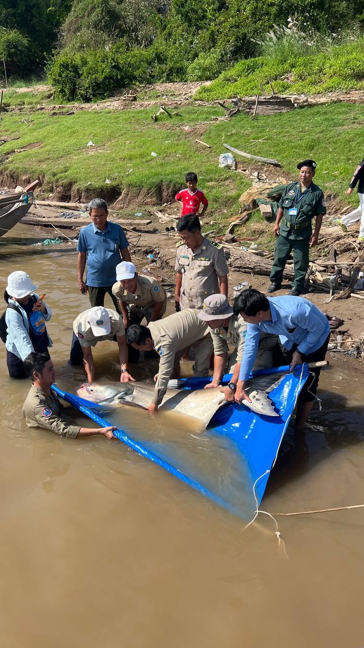 ប្រជានេសាទ នេសាទបានត្រីរាជ ទម្ងន់ ៦៣គីឡូក្រាម បានប្រគល់ឲ្យរដ្ឋបាលខណ្ឌជលផលកំពង់ចាម លែងចូលទន្លេវិញ