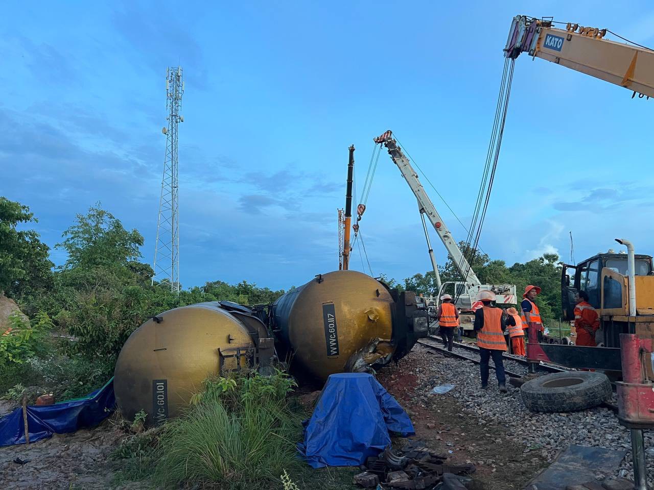 សូមបញ្ជាក់ថា រថភ្លើងដឹកប្រេងរបស់ក្រុមហ៊ុនរ៉ូយ៉ាល់រ៉ែលវេរ ទិសដៅពីកើតទៅលិច ចេញពីភ្នំពេញឆ្ពោះទៅខេត្តបាត់ដំបង បានក្រឡាប់ធ្លាក់ទូដឹកប្រេងម៉ាស៊ូត ត្រង់ចន្លោះគីឡូម៉ែតលេខ ២០៨-២០៩ ចម្ងាយប្រមាណ ៧០ ម៉ែត្រពីលំនៅដ្ឋានប្រជាជន ក្នុងភូមិសាស្រ្តស្រុកបាកាន ខេត្តពោធិ៍សាត់។ ឧបទ្ទវហេតុនេះ បណ្តាលទដឹកប្រេងចំនួន ៤ ធ្លាក់ចេញពីរថភ្លើង ក្នុងនោះទូផ្ទុកប្រេងចំនួន ៣ ទទួលរងការខូចខាត និងបណ្តាលមានប្រេងហៀរចេញ ប្រមាណ ៣០០០០ លីត្រ។ ប្រេងដែលបានលេចជ្រៀបចេញពីទូរថភ្លើងទាំងនេះ ត្រូវបានប្រជាពលរដ្ឋបានដួសយកទៅប្រើប្រាស់មួយចំនួន និងនៅសល់ខ្លះតាមបណ្តោយ ដីចំណីផ្លូវរថភ្លើងទំហំប្រមាណ ៦០០០ ម៉ែត្រការ៉េ។ ឯកឧត្តមបណ្ឌិត អ៊ាង សុផល្លែត រដ្ឋមន្រ្តីក្រសួងបរិស្ថាន បានចាត់ក្រុមការងារចុះទៅពិនិត្យនិងធ្វើការសហការជាមួយអ្នកពាក់ព័ន្ធ ដើម្បីទប់ស្កាត់ការបំពុលនៅកន្លែងកើតហេតុភ្លាមៗ។ កន្លងមកក្រុមការងារក្រសួងបរិស្ថាន បានចាត់វិធានការទប់ស្កាត់ការសាយភាយសំណល់ប្រេង ការសម្អាតប្រេង ការត្រួតពិនិត្យសុខភាពប្រជាពលរដ្ឋ ដែលអាចទទួលរងផលប៉ះពាល់ ដោយសារការដួសសំណល់ប្រេងទៅប្រើប្រាស់។ ក្រុមការងារបានសហការជាមួយភាគីពាក់ព័ន្ធ និងជាមួយក្រុមហ៊ុន រៀបចំការសម្អាតសំណល់ប្រេង រួមមានការបូប ការកាយយកដីប្រឡាក់ប្រេងចេញ និងការប្រើប្រាស់ចំបើងដើម្បីបឺតយកសំណល់ប្រេង នៅទីតាំងដីចំណីផ្លូវរថភ្លើង។ ជាបន្តបន្ទាប់ក្រុមហ៊ុនបានប្រមូល វេចខ្ចប់និងទុកដាកចំបើង ដែលមានសំណល់ប្រេងត្រឹមត្រូវ ដើម្បីដឹកជញ្ជូនយកទៅដុតកម្ទេចនៅក្រុមហ៊ុនកំពតស៊ីម៉ង់តិ៍ និងប្រើប្រាស់គ្រឿងចក្រ សម្រាប់បាញ់សម្អាត កាយដីប្រឡាក់ និងបូមយកសំណល់ប្រេងពីដីចំណីផ្លូវរថភ្លើងឱ្យបានស្អាតជាបណ្តើរៗ។ រហូតមកដល់ថ្ងៃទី ០១ ខែមករា ឆ្នាំ ២០២៦ ការសម្អាតសំណល់ប្រេង ឈានទៅបញ្ចប់នៅពេលខាងមុខ។